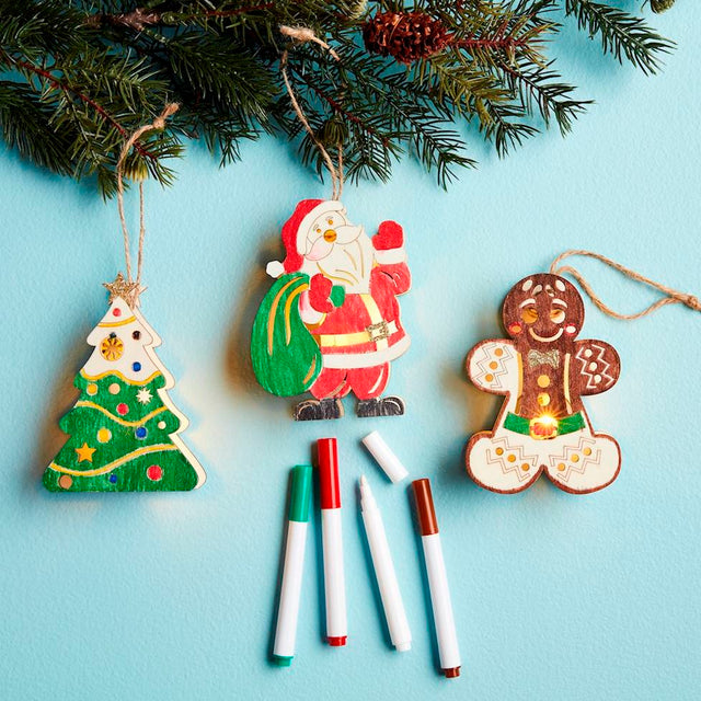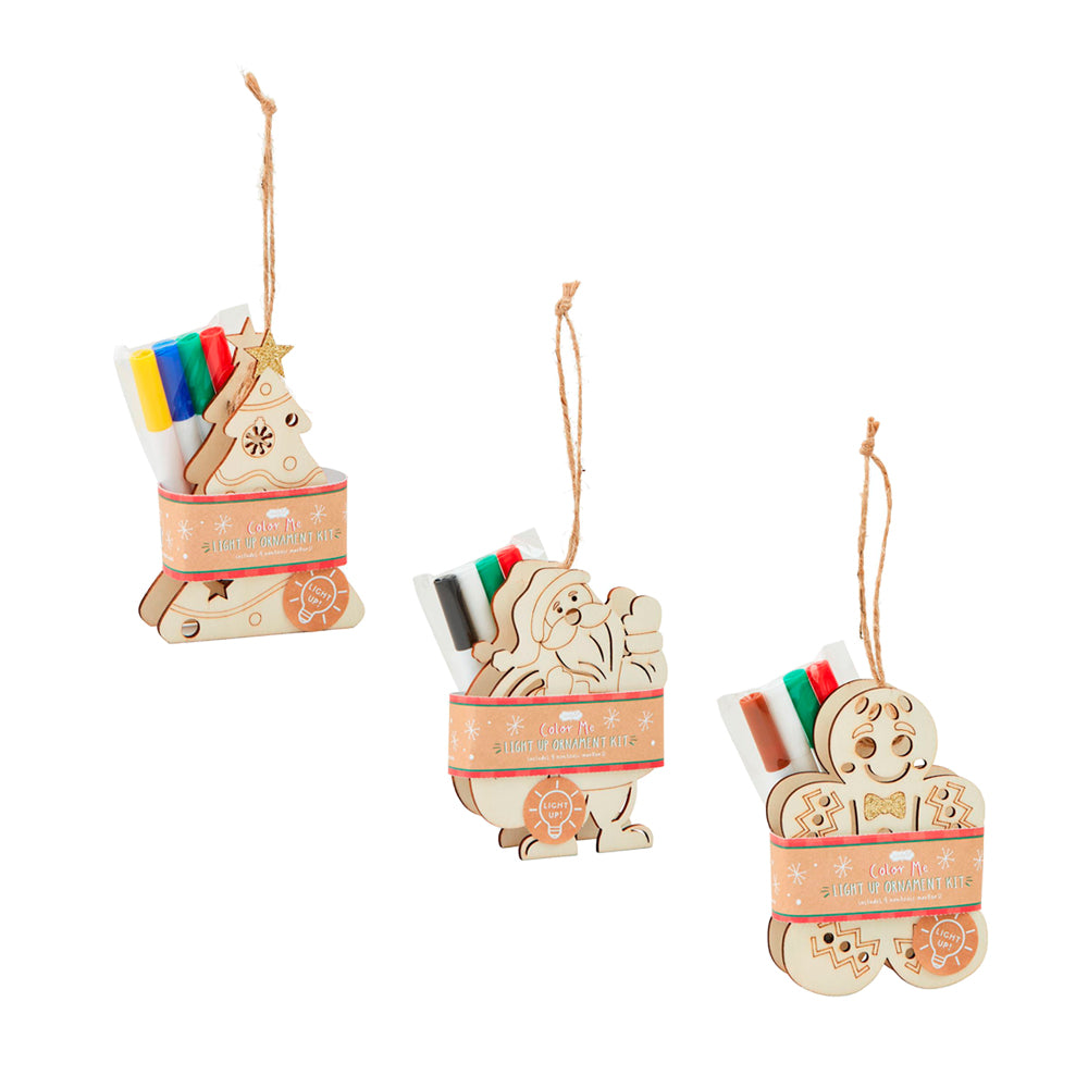 Color-Me Light-Up Ornament is a fun and creative way to decorate your Christmas tree. This 2-piece set includes a wooden ornament that lights up and a pack of four non-toxic markers for coloring. It comes with a battery included, so you can enjoy the festive glow right away. This activity is suitable for children ages 3 and up, making it a great way to get the whole family involved in holiday decorating. Let your little ones unleash their creativity and add a personal touch to your Christmas tree with this charming ornament.