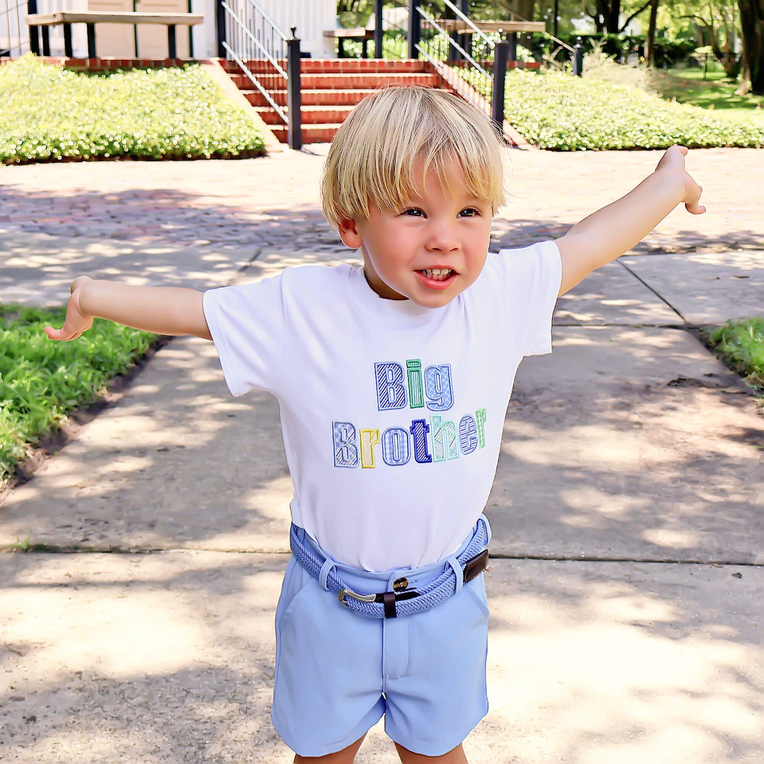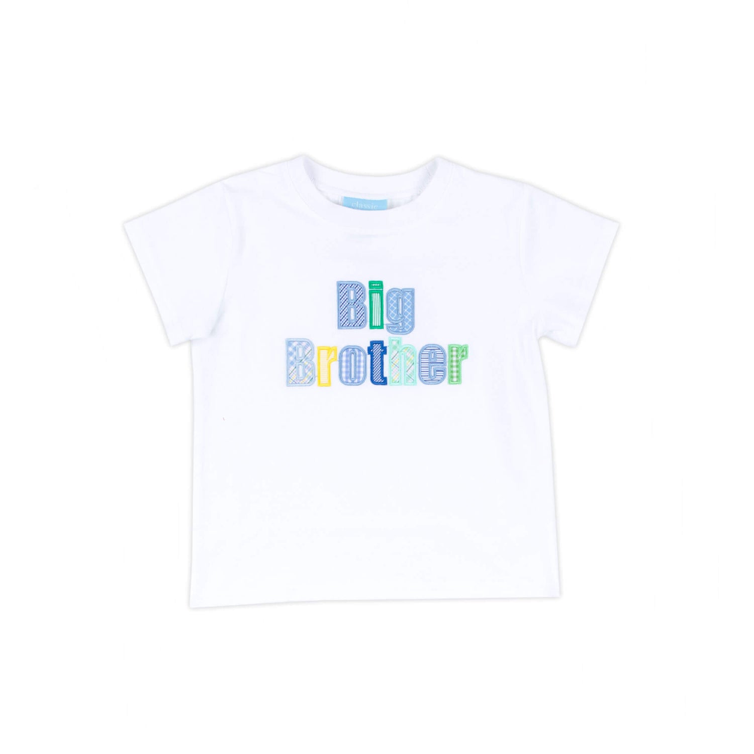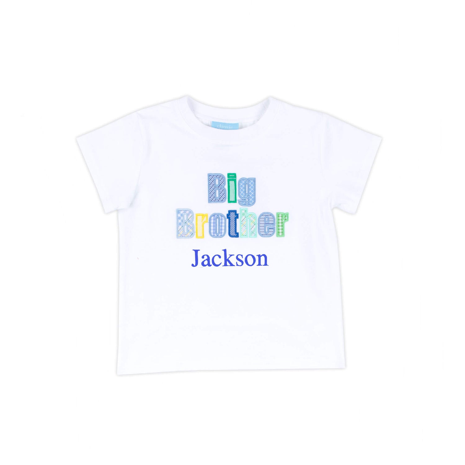 Your big boy will love showing off his new title in this Big Brother Multi Color Short Sleeve Shirt! Made from soft white knit, it features a bold "Big Brother" applique, perfect for celebrating his special role in style. Add a monogram for a personalized touch.
