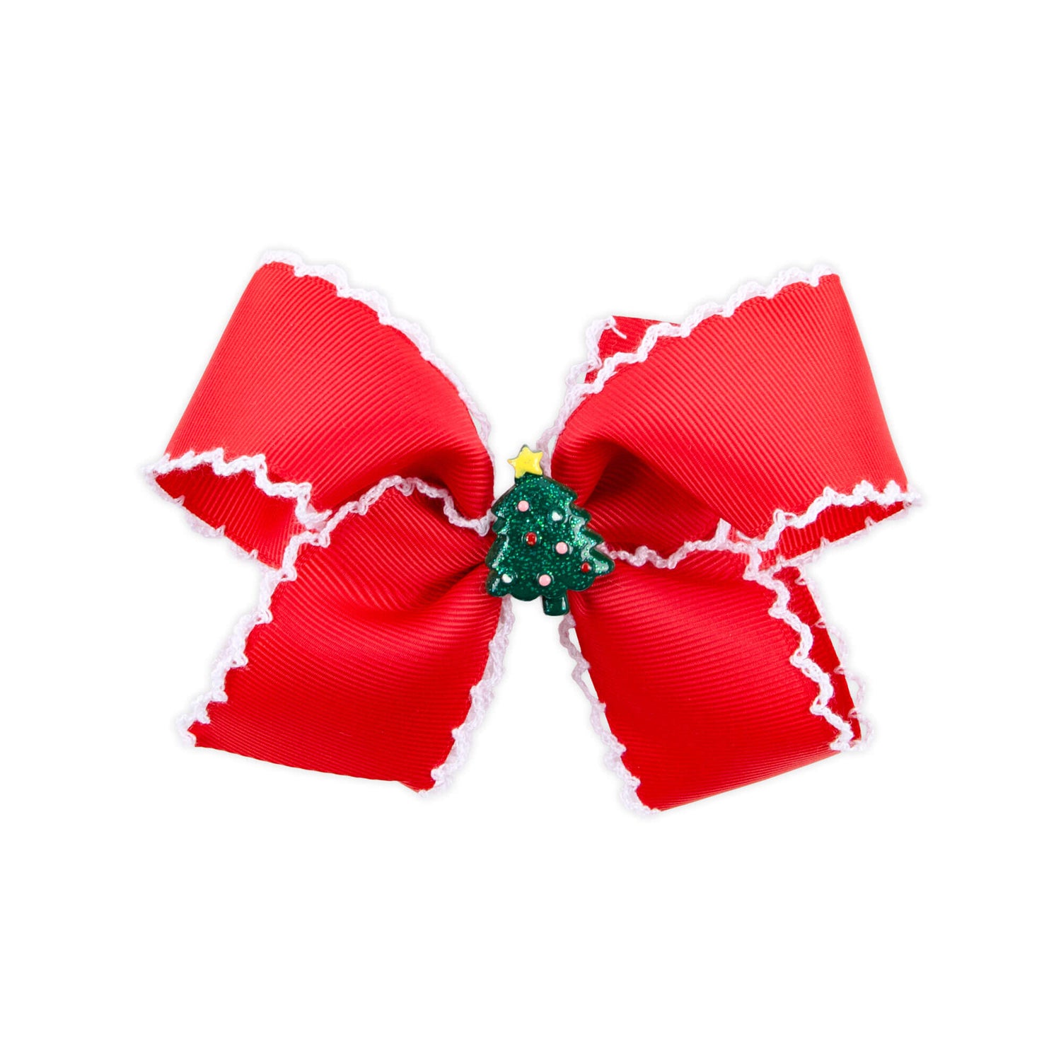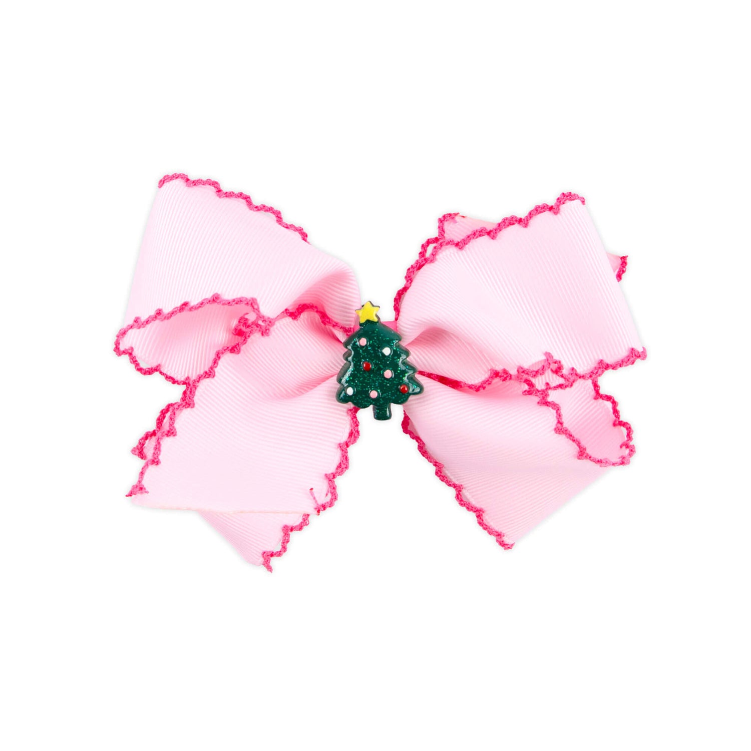 Complete your holiday look with this festive Christmas Tree Charm Moonstitch Hair Bow! Not only does it feature a beautiful moonstitch edge, but it also has a Christmas Tree charm, adding a sweet touch to your outfit.