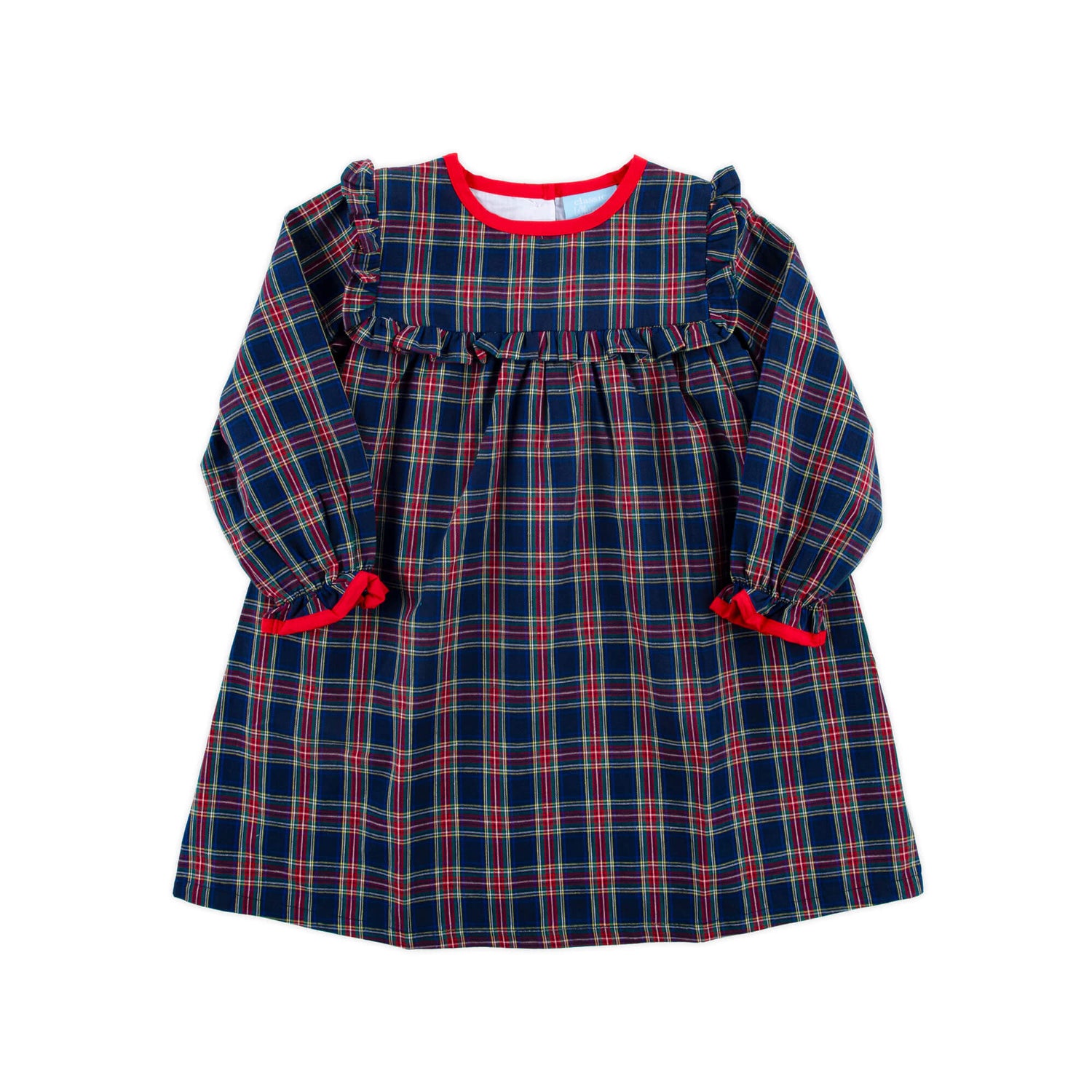 This Dunbar Plaid Royal Hattie Dress is perfect for holiday pictures with the family. The Hattie-style dress is designed in a classic plaid fabric, features beautiful long bishop sleeves and flutter detail. Add a monogram to make the outfit stand out!