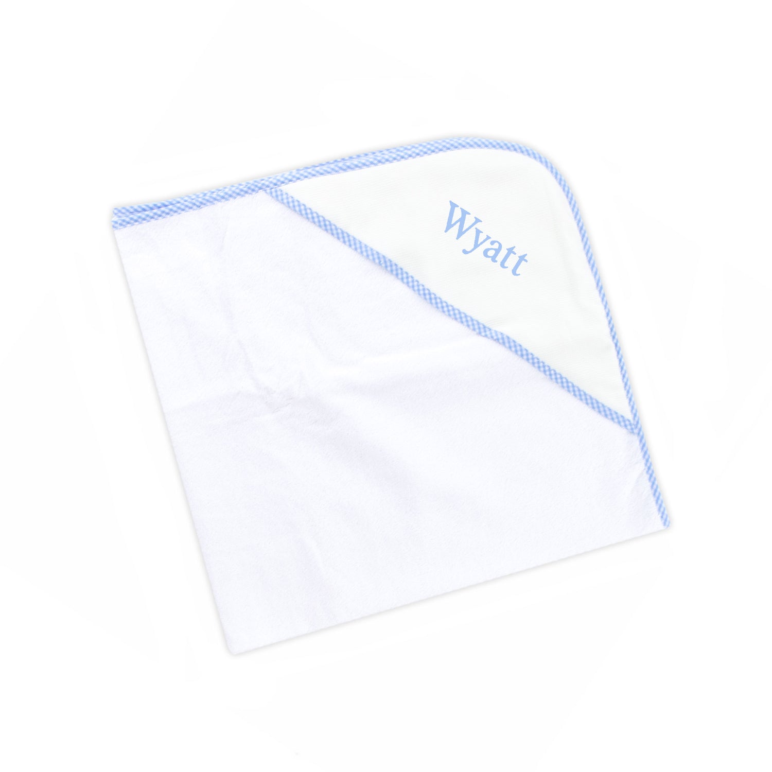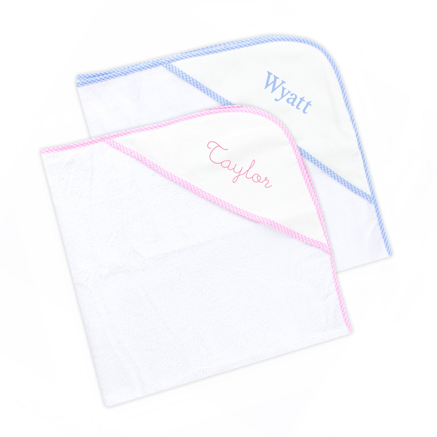 The Gingham Hooded Towel is a delightful and charming addition to your child's bath time essentials. Crafted from soft terry cloth, this towel offers a gentle touch against delicate skin. The towel features a playful pink or blue gingham trim enhances adding a touch of whimsy and fun.