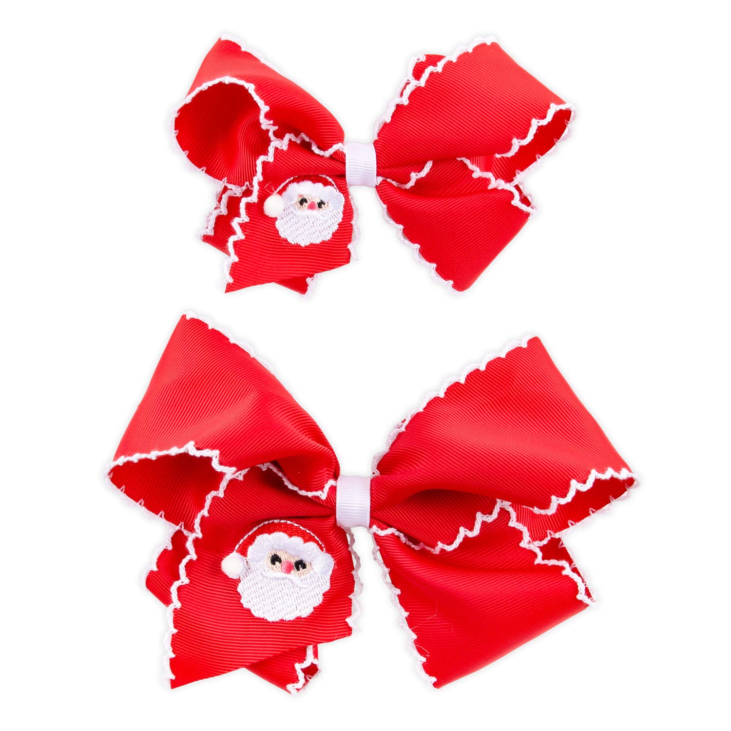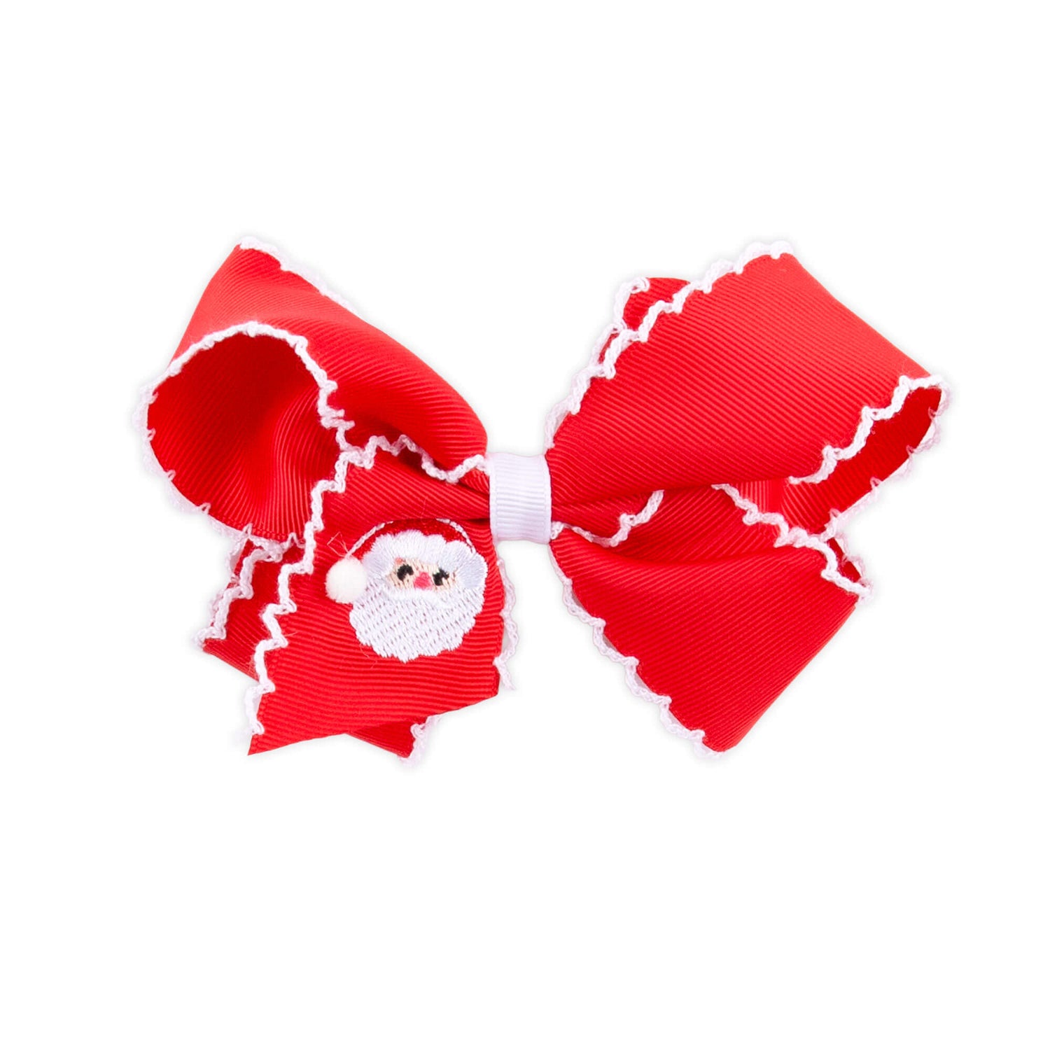 Make sure she's ready for Christmas pictures and fun festivities with this Happy Santa Embroidered Moonstitch Bow!