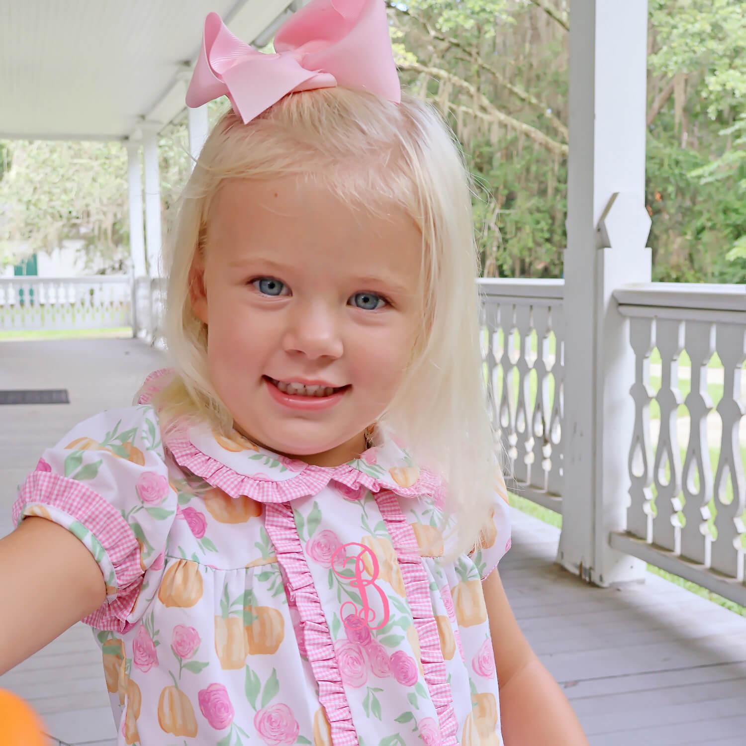 Your little one will be the cutest pumpkin in the patch with our Pink Floral Pumpkin Camila Bubble. This Camila-style bubble features a beautiful pumpkin and floral print. Designed with an adorable collar, ruffle details, and snaps in stride, it’s perfect for the season!