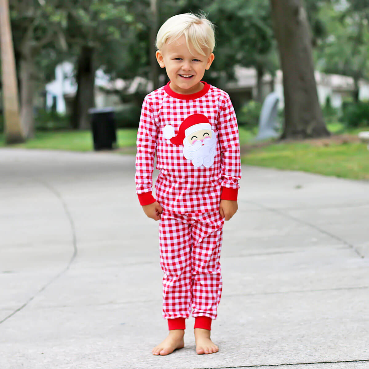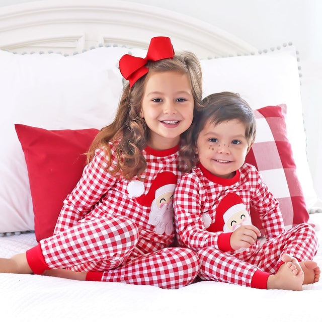 Get your little ones ready for Christmas morning with our Happy Santa Red Gingham Pajamas! These unisex Christmas PJs make it easy to match brothers and sisters, cousins, and friends for the coziest holiday of the year. Featuring a cheerful Santa appliqué on a soft red gingham print with festive red trim, these pajamas are perfect for capturing holiday memories. Add a monogram to personalize your Christmas look and make the season extra special!