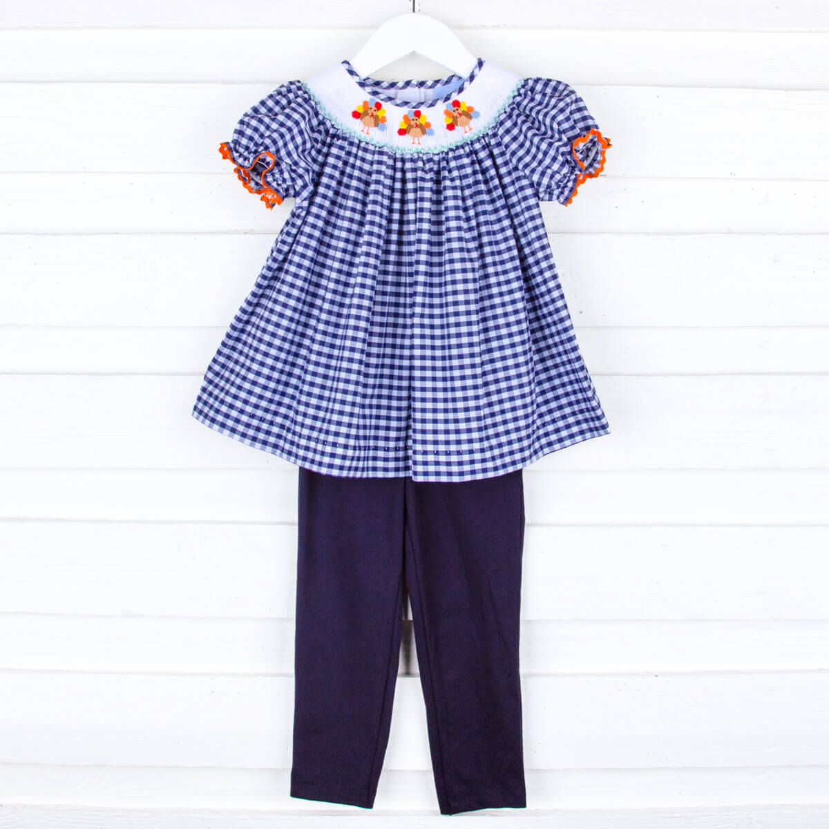 Sweet Turkey Navy Gingham Smocked Bishop Legging Set