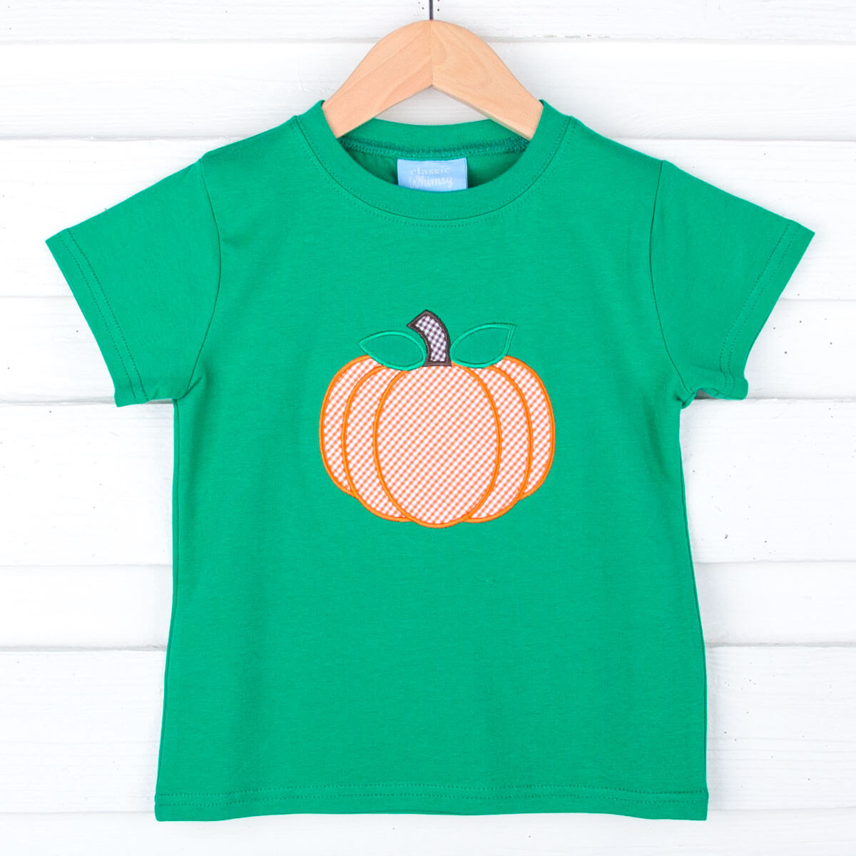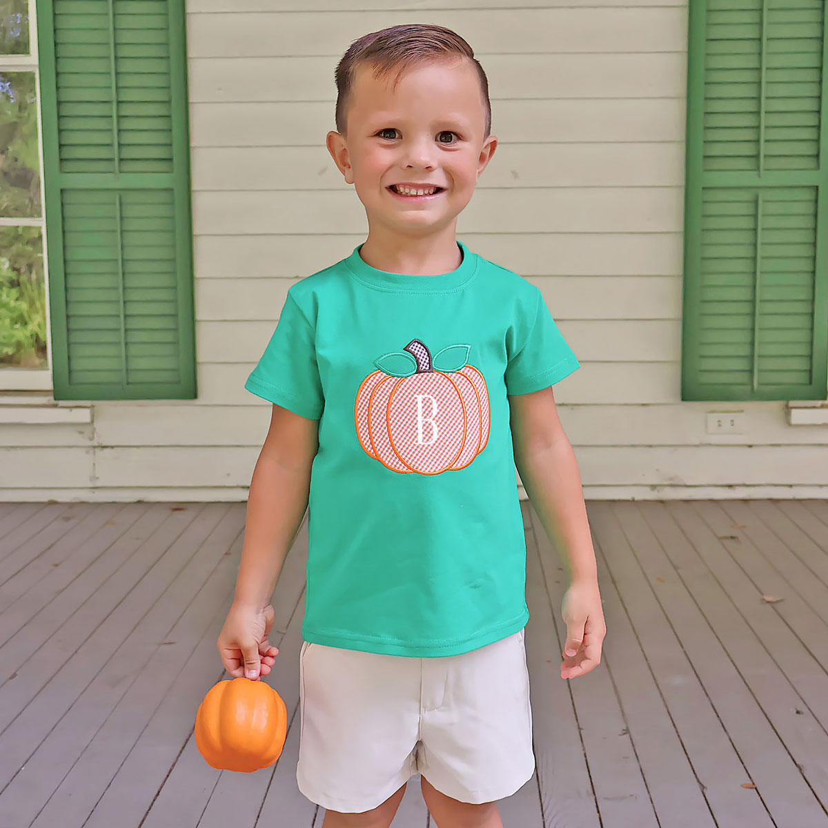 Pumpkin patch season is here, and our The Great Pumpkin Green Short Sleeve Shirt is just what your little one needs! This green knit shirt features an awesome large pumpkin applique. It's perfect for playtime, comfort, and all-around cuteness! And don't forget to add an initial monogram right in the center of the pumpkin for that special touch.