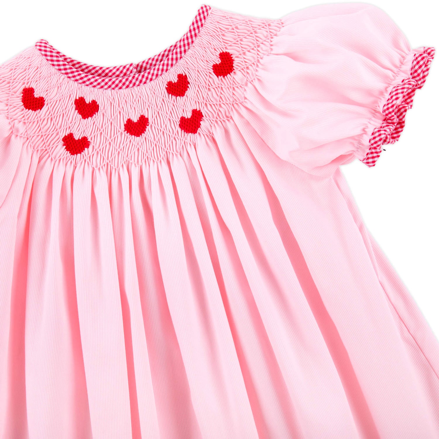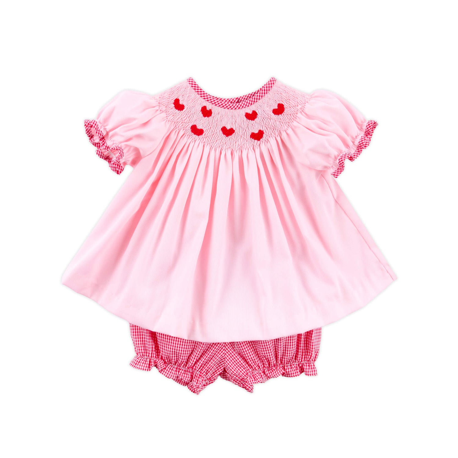 Tiny Hearts Pink Pique Smocked Bishop Bloomer Set
