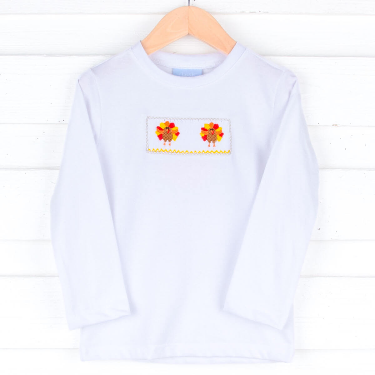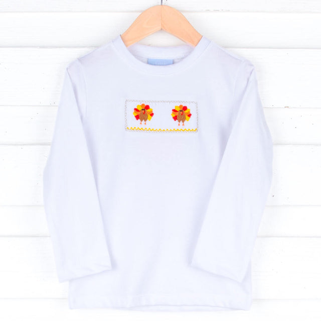 Celebrate Thanksgiving in style with our Turkey Smocked White Long Sleeve Shirt, ideal for festive family gatherings. This charming shirt features adorable smocked turkeys, adding a delightful holiday touch to your little one’s outfit.