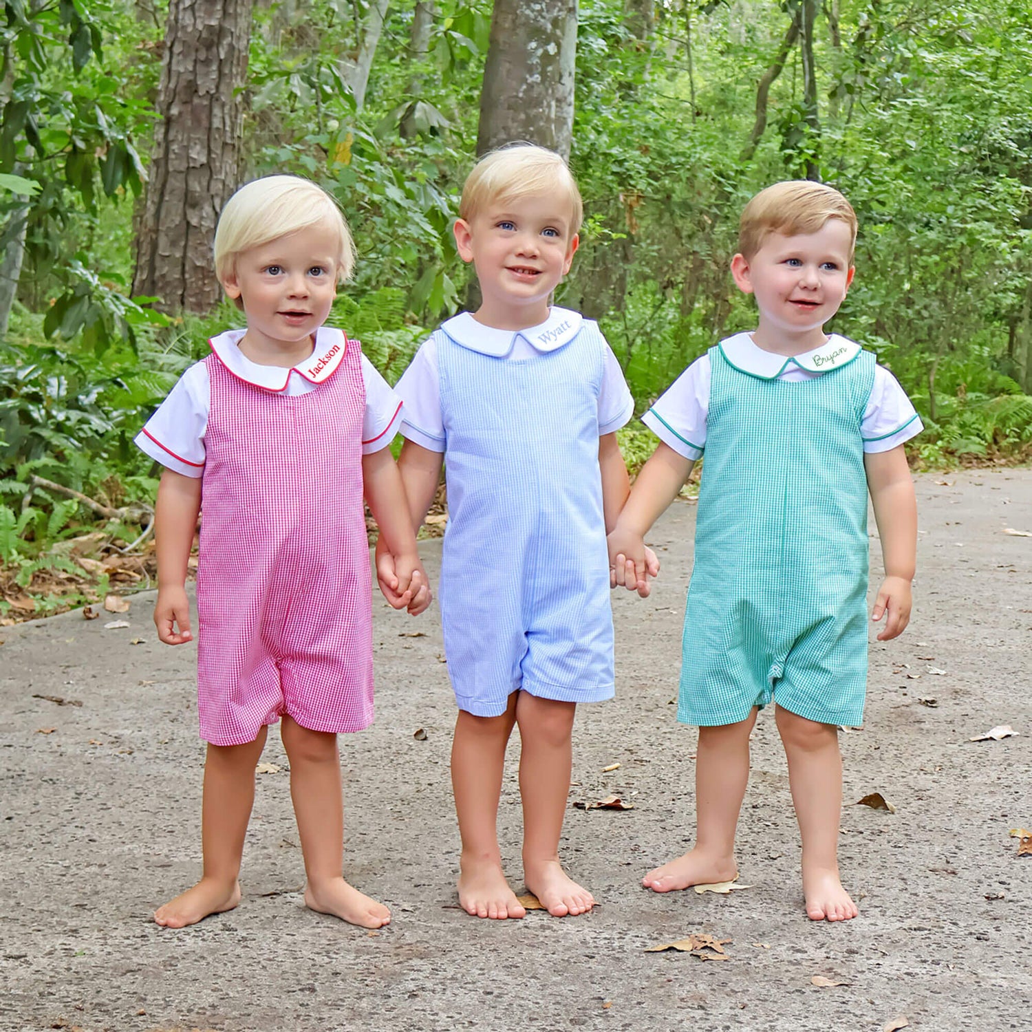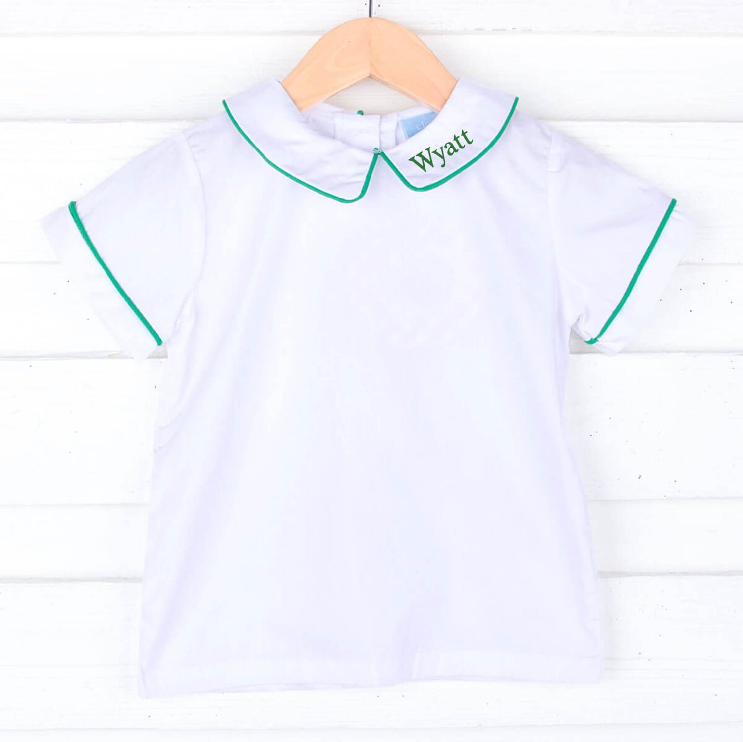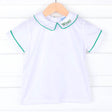 Add this White Short Sleeve Undershirt With Color Trim to your little one's spring and summer wardrobe. This short sleeve white shirt features a collar with piping available in a variety of colors including tan gingham, red, green, light blue and royal blue.