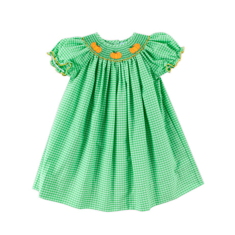 From $15.50Unit price /Unavailable in this combinationParadise Pumpkin Smocked Green Windowpane Bishop Dress