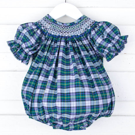 Cluster Pumpkin Smocked Royal Windowpane Collared Bubble