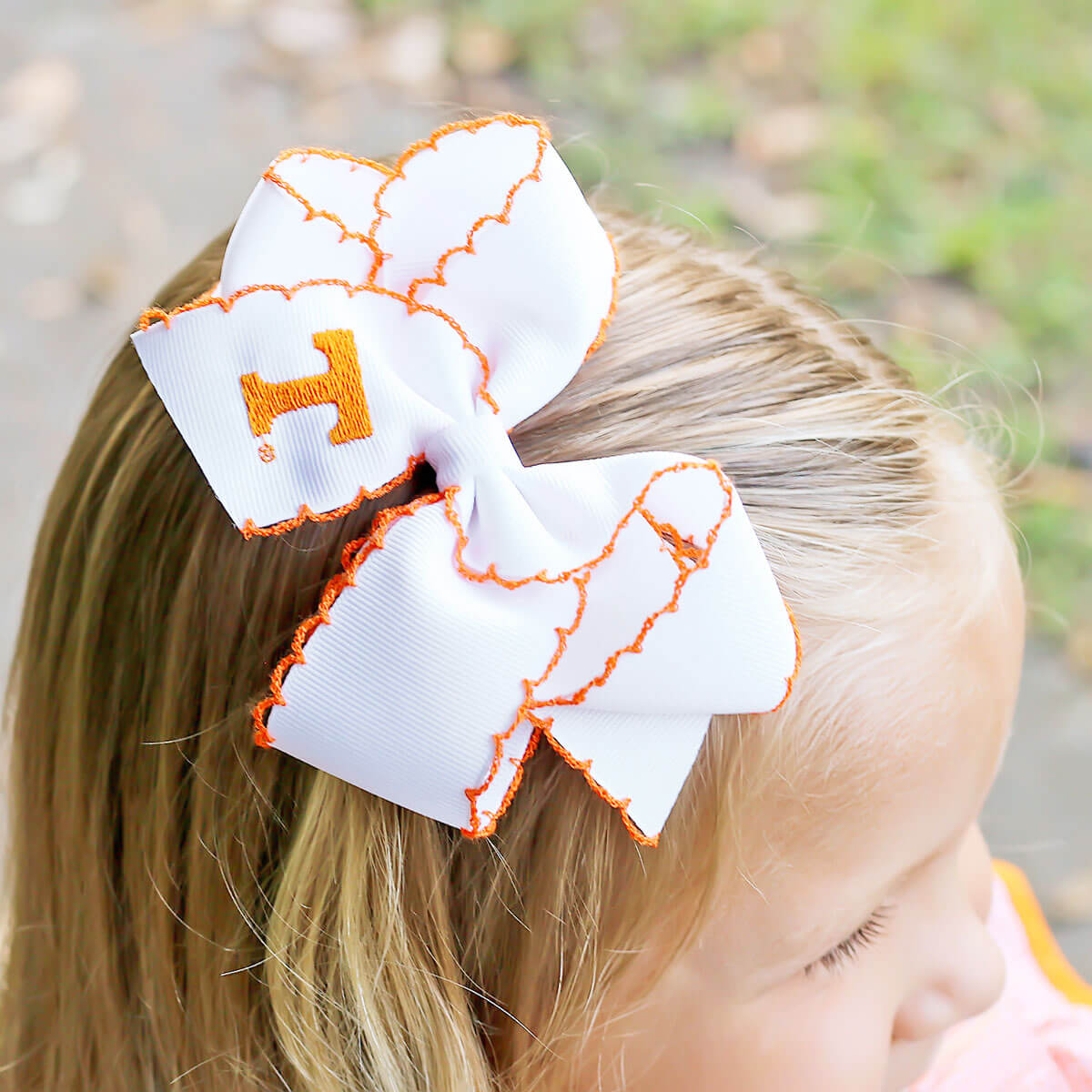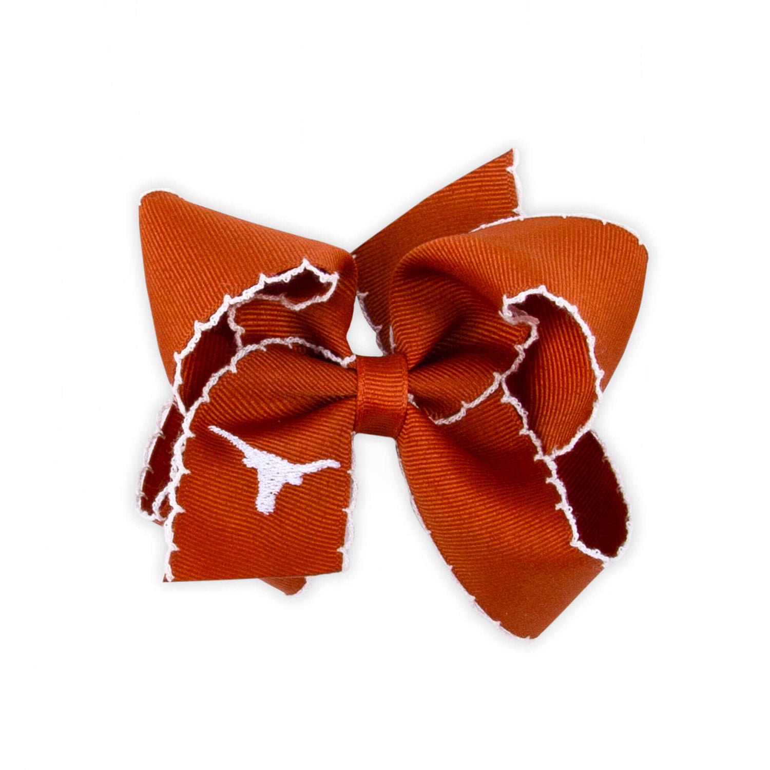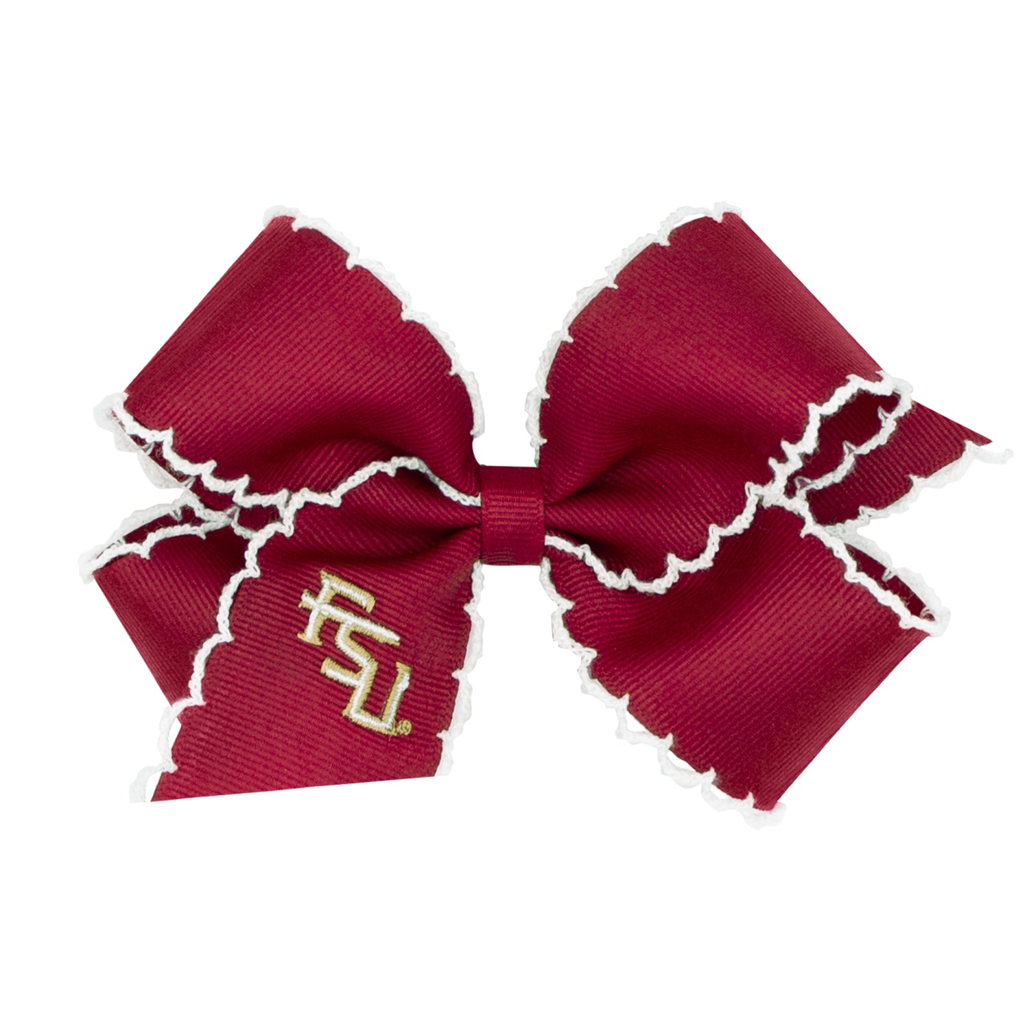 Show your team spirit by wearing this officially licensed collegiate hair bow from our Game Day Collection. This grosgrain hair bow with moonstitch edge and collegiate embroidered logo is perfect for girls of all ages and is sure to stay in her hair all day with our patented WeeStay™ no-slip hair clip.