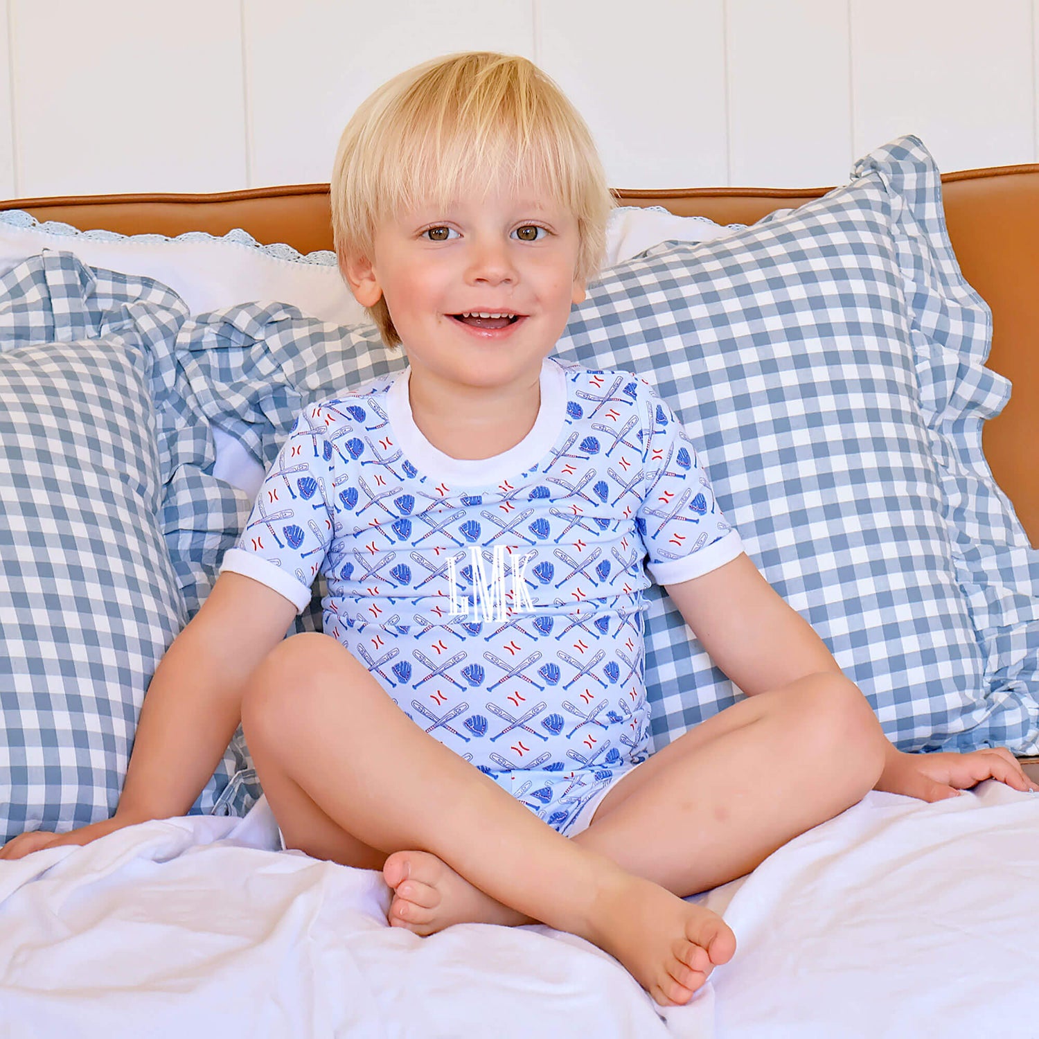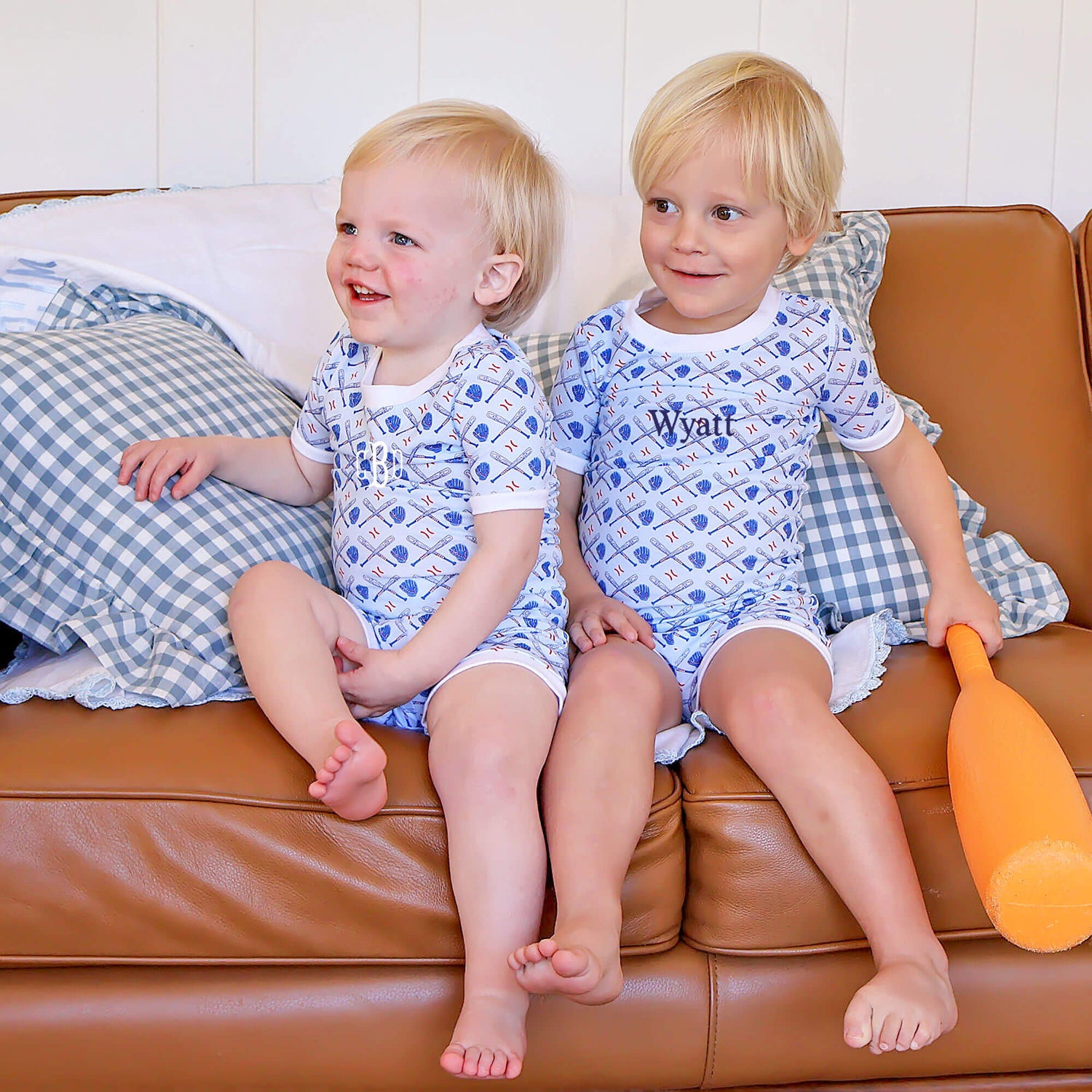 Your little baseball star will love bedtime in our Baseball Star Short Pajamas! Featuring a playful baseball print, this short-sleeve top and pull-on shorts set is perfect for comfort and fun. Add a monogram to make these pajamas uniquely theirs!