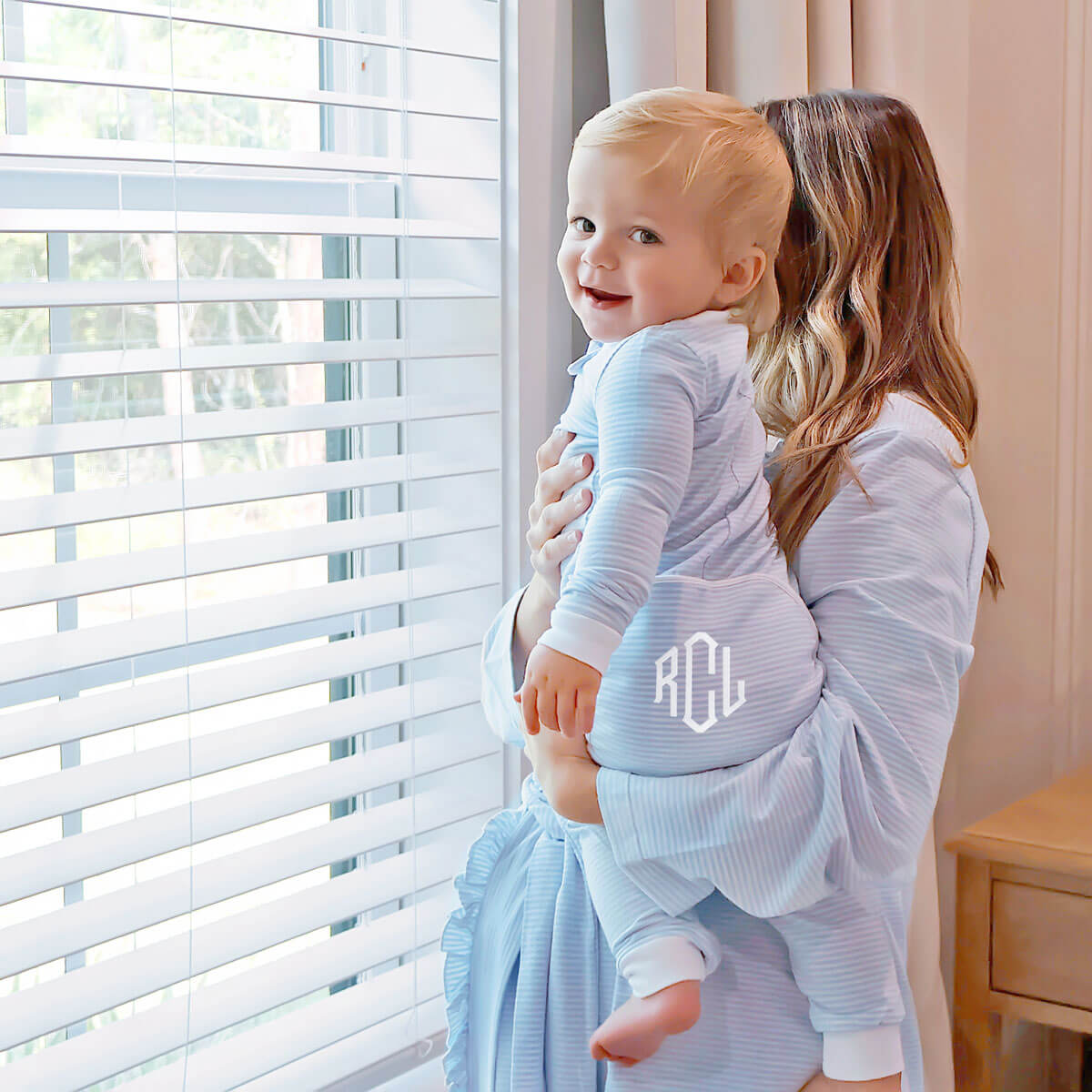 This classic Blue Stripe Women's Gown is perfect for all moms, all year round! With its relaxed fit and charming flutter sleeves, it combines comfort and style effortlessly. The soft cotton-blend fabric is gentle on delicate skin, making it a great choice for every season. Thoughtfully designed, this gown makes a heartwarming gift for new moms-to-be. Plus, you can coordinate with your little one’s pajamas or baby sleeper for an extra sweet matching moment!
