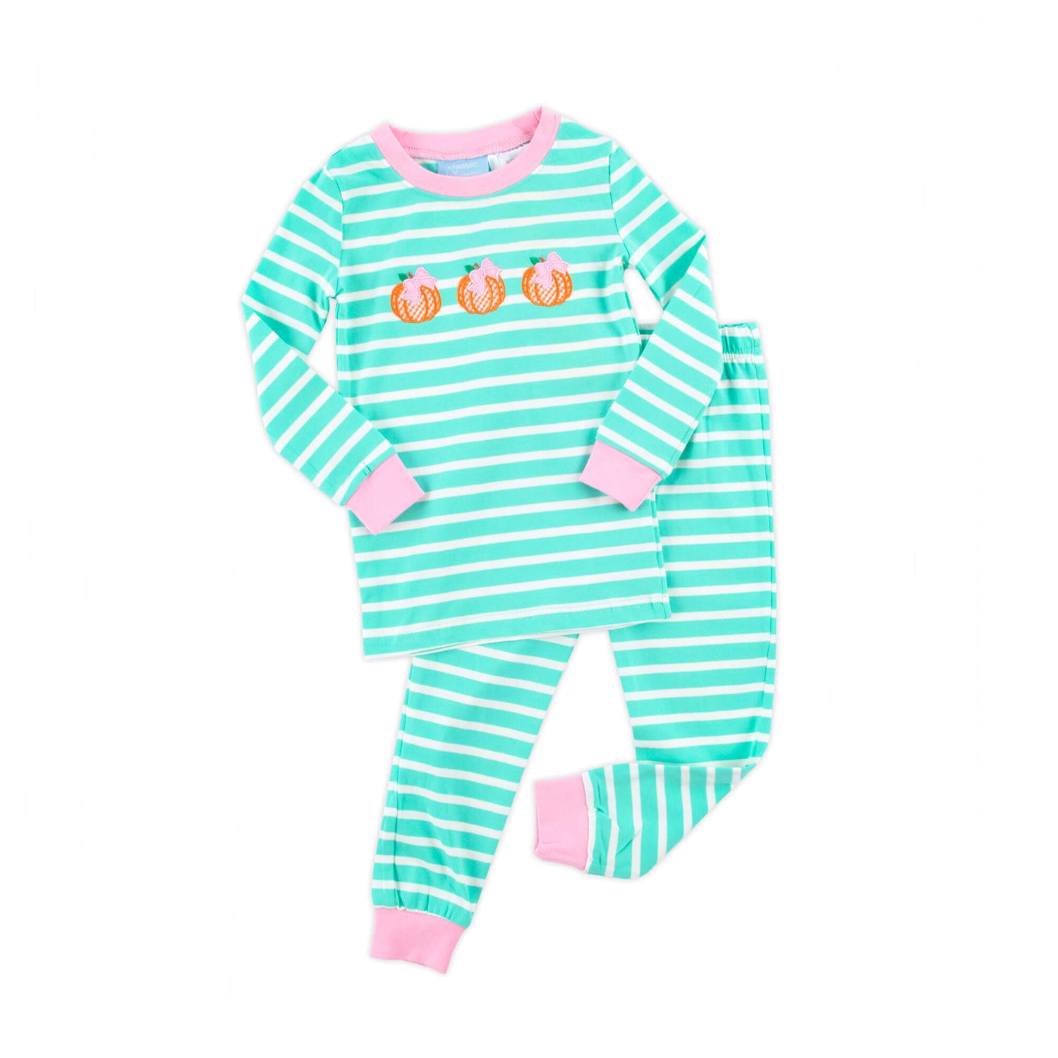 Pumpkin Bows Turquoise Stripe Pajamas