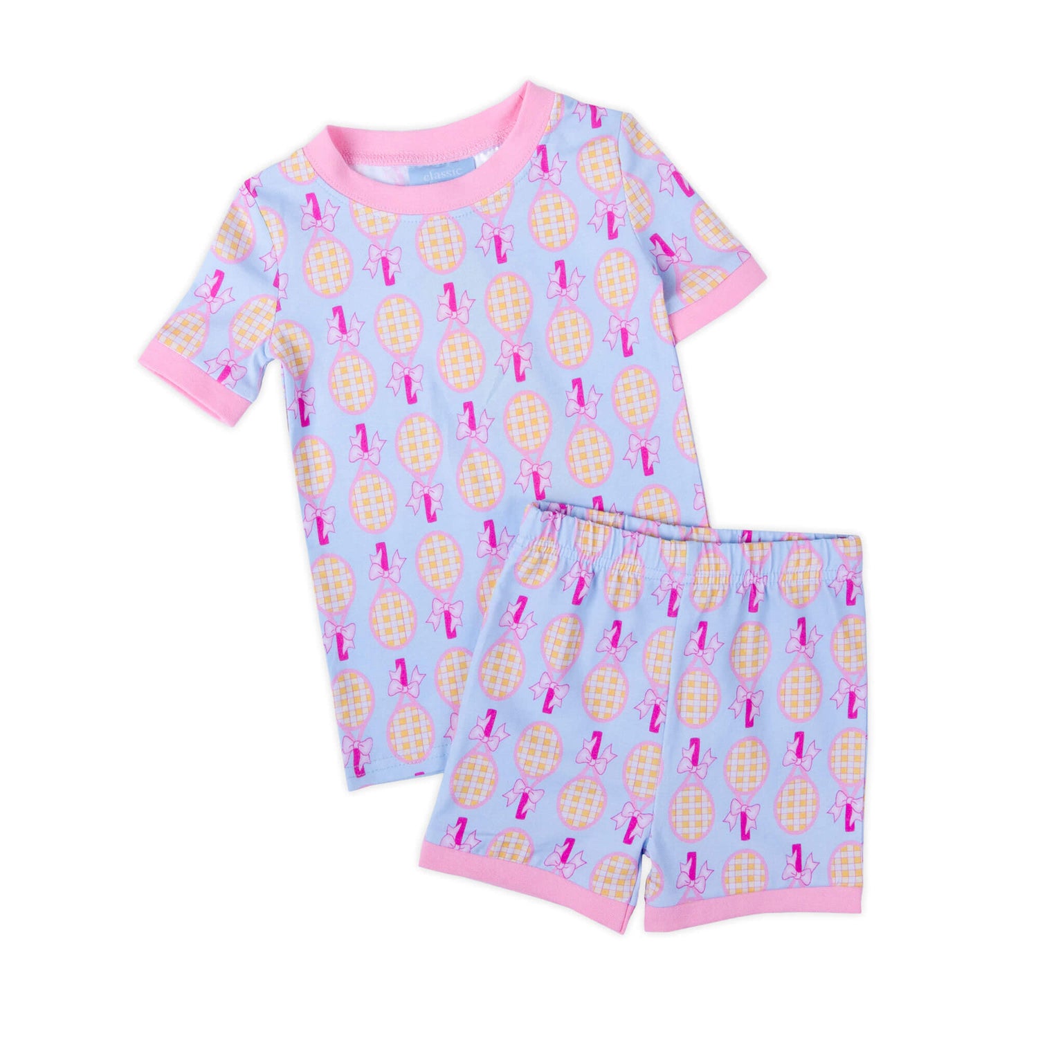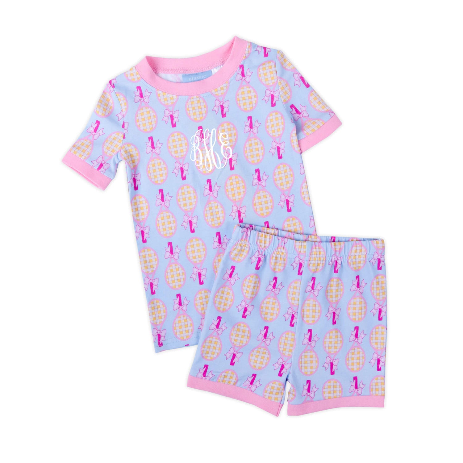Ensure your little one stays warm and comfortable while sleeping in our Colorful Racquet Short Pajamas. With a charming tennis racquet print, this set is designed for nighttime comfort. It includes a cozy short-sleeve pajama top and matching pull-on pajama shorts, providing the perfect combination of comfort and style. Personalize these pajamas with a monogram for an adorable touch! Whether it's for a good night's sleep or simply enjoying a comfortable bedtime routine, your little one will love these pajamas.
