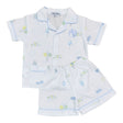 Your little one will be ready for sweet dreams and birthday fun in this Happy Birthday Blue Short Pajamas! Featuring an adorable birthday print with a cake and balloons, this short-sleeve pajama top and pull-on shorts set is as delightful as his big day. Makes the perfect birthday gift! Add a monogram to make these pajamas even more special.