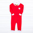 Your little one will be dreaming of Christmas in this adorable Happy Santa Red Zip Sleeper! This soft and comfy red knit onesie is perfect for the holiday season. It features an embroidered Santa on the side and cute white ribbing for a festive touch. With an easy zip-up front and a sewn-down back flap, this sleeper is both practical and charming. Available in selected sizes as both footed and footless options. It’s the perfect Christmas gift for your little one! Add a monogram to make this sleeper even more special!