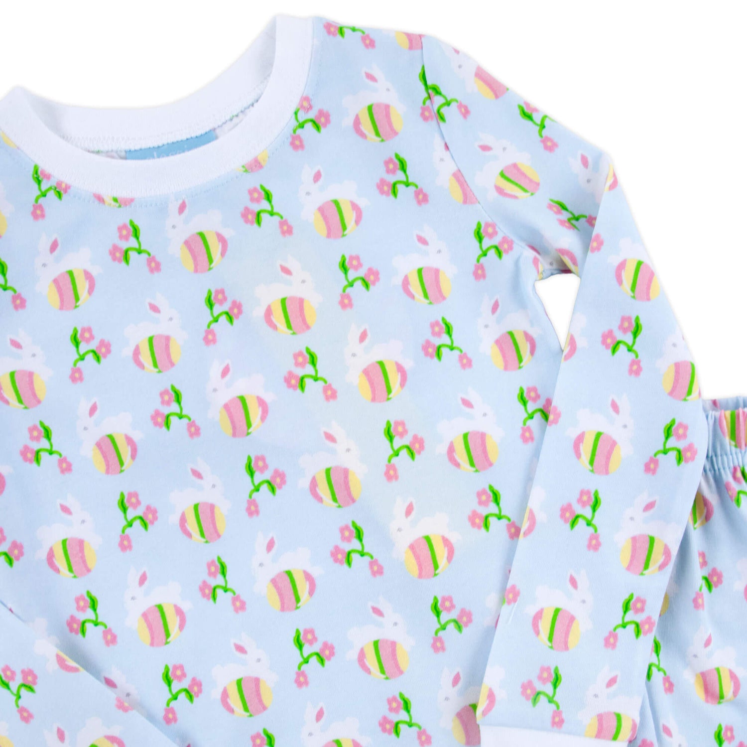 Perfect for Easter morning celebrations, our Hop Into Easter Pink Pajamas are ideal for spring! These pajamas feature a playful Easter eggs and bunnies print with white ribbing. The set includes a long-sleeve top and matching pull-on pajama pants, offering a cozy and comfortable fit. Add a monogram for an adorable, personalized touch!
