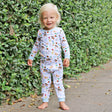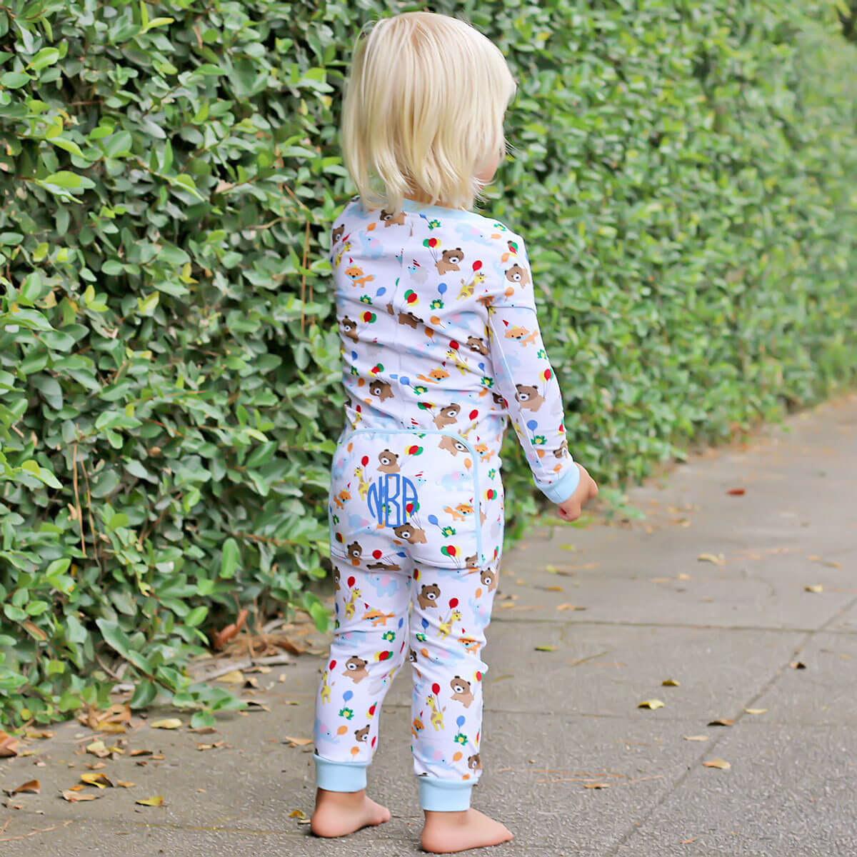 Your little one will be warm and comfortable sleeping in our Party Animal Zip Sleeper. Features the cutest animal print with balloons. Makes the perfect birthday gift! Make this onesie extra special by adding a monogram! Easy zip-up front zipper! Back flap is sewn down. Selected sizes available footed & footless.