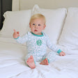 Your little duckling will love these Mallard Pond Pajamas. These are the softest and most comfortable pajamas! Features the coolest mallard duck print with green ribbing. The two-piece set includes a cozy long sleeve pajama top and coordinating pull-on pajama pants. Add a monogram to personalize your look!