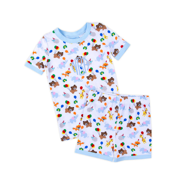 Your little one will be ready for sweet dreams and birthday fun in our Party Animal Short Pajamas Featuring the cutest birthday animal print with balloons, this short-sleeve pajama top and pull-on shorts set is as delightful as his big day. Makes the perfect birthday gift! Add a monogram to make these pajamas even more special.