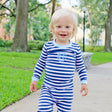 Your little one will be warm and comfortable sleeping in our The Stripe is Right Navy Pajamas. Features a navy stripe print and light blue ribbing. Make these pajamas extra cute by adding a monogram!