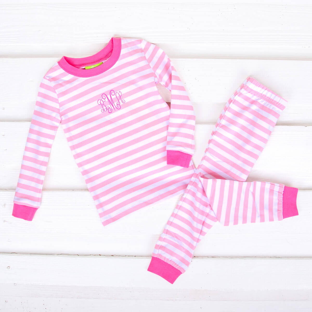 Your little one will be warm and comfortable sleeping in our The Stripe is Right Pink Pajamas. Features a pink stripe print and pink ribbing. Make these pajamas extra cute by adding a monogram!