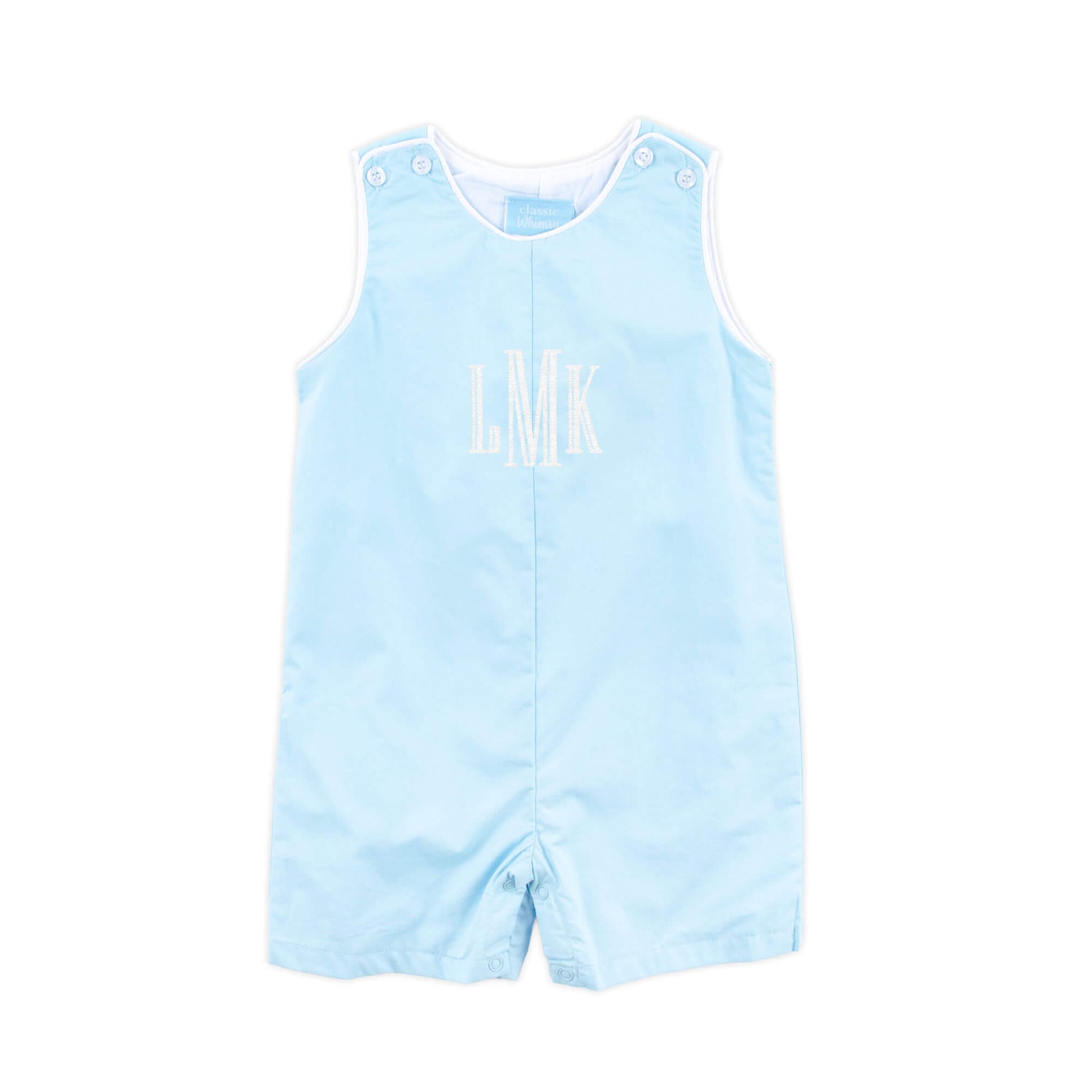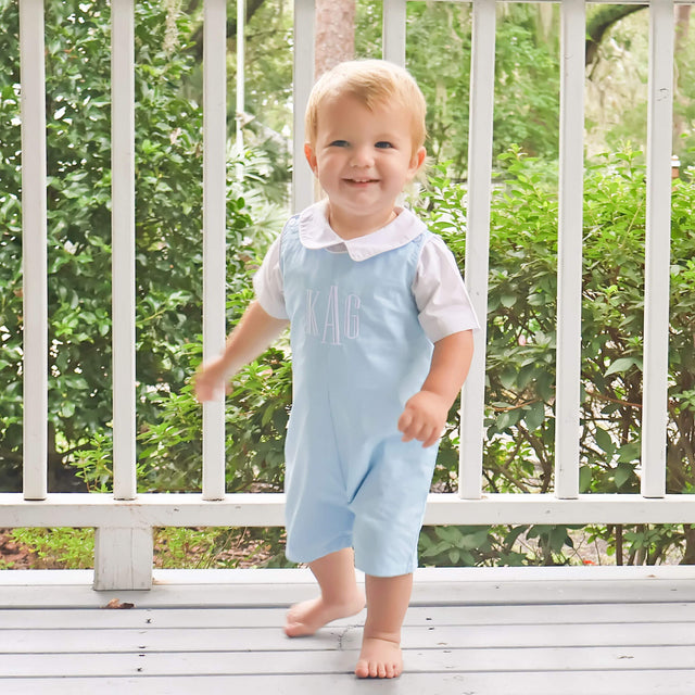 Introducing our timeless Solid Light Blue Jon Jon, a versatile and classic outfit perfect for any occasion or holiday celebration. This light blue Jon Jon, with its simplicity and elegance, is a staple in every wardrobe. Designed with practical shoulder straps and convenient snaps in stride, this outfit ensures both style and comfort for your little one. Elevate its charm by adding a monogram, providing a personalized touch that makes this classic piece uniquely theirs.