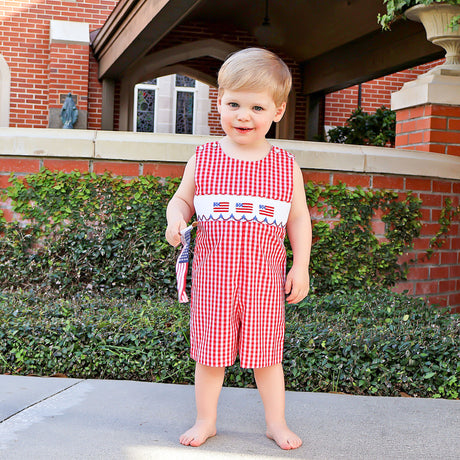 $44.99Unit price /Unavailable in this combinationRed Check American Flag Smocked Jon Jon
