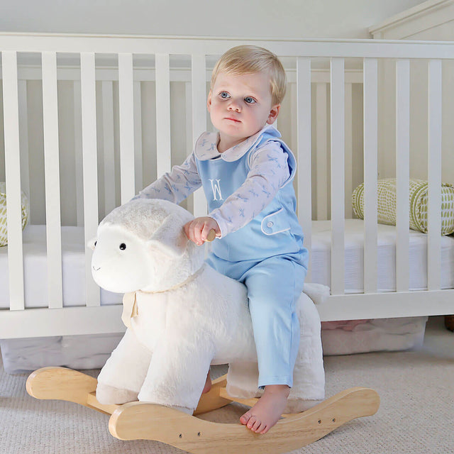 This Blue Knit Longall is perfect for every season! Made from soft knit fabric, it features a sleeveless design, side tabs, and white piping trim. Shoulder buttons and snaps at the stride add convenience to this charming piece. Personalize it by adding a monogram for an extra special touch!