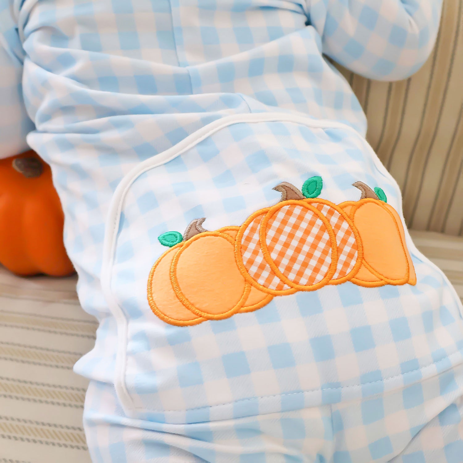 Pumpkin Cluster Blue Gingham Zip Sleeper