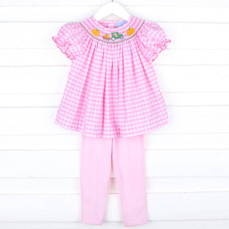 $34.99$41.99Unit price /Unavailable in this combinationPumpkin Hayride Pink Check Smocked Legging Set