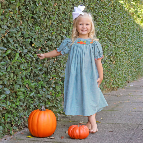 $34.99$41.99Unit price /Unavailable in this combinationBlue Floral Pumpkin Smocked Beth Dress