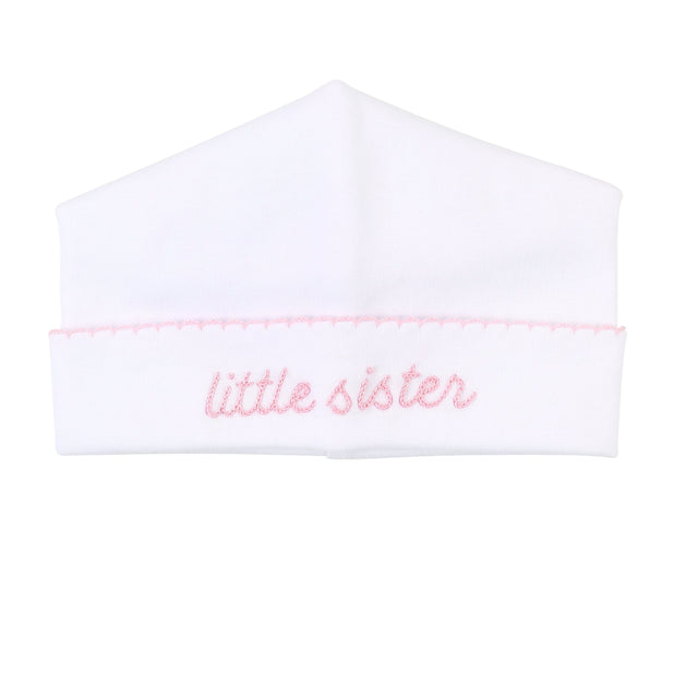 A heartfelt welcome to the family! Your newest arrival is in for a treat with our Little Sister Embroidered Hat, designed from the softest pima cotton. This cozy hat is not only perfect for keeping your little one warm and comfy but also for adding an extra touch of sweetness to those early family photos. Made with love, it's a wonderful way to introduce your littlest sibling.