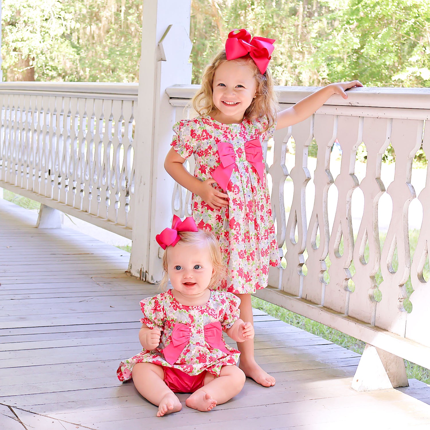 This Miracle Garden Pink Isabella Dres is perfect for all your little one's fall adventures! The Isabella-style dress features a beautiful pink floral print and a charming pink bow for an extra sweet touch. This outfit is as adorable as it is comfortable. Add a monogram to make it uniquely theirs!