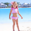 This Capri Pink Two Piece Swimsuit is the perfect choice for your upcoming family vacation or poolside gathering. The crop swim top features a fabulous pink gingham print, ruffle hem, and two adorable pink bows. Accompanied by a matching ruffle swim bottom, this set ensures both style and comfort. The swimsuit provides UPF 50 Protection to keep your little one safe under the sun. Personalize the look by adding a monogram to make it uniquely yours!