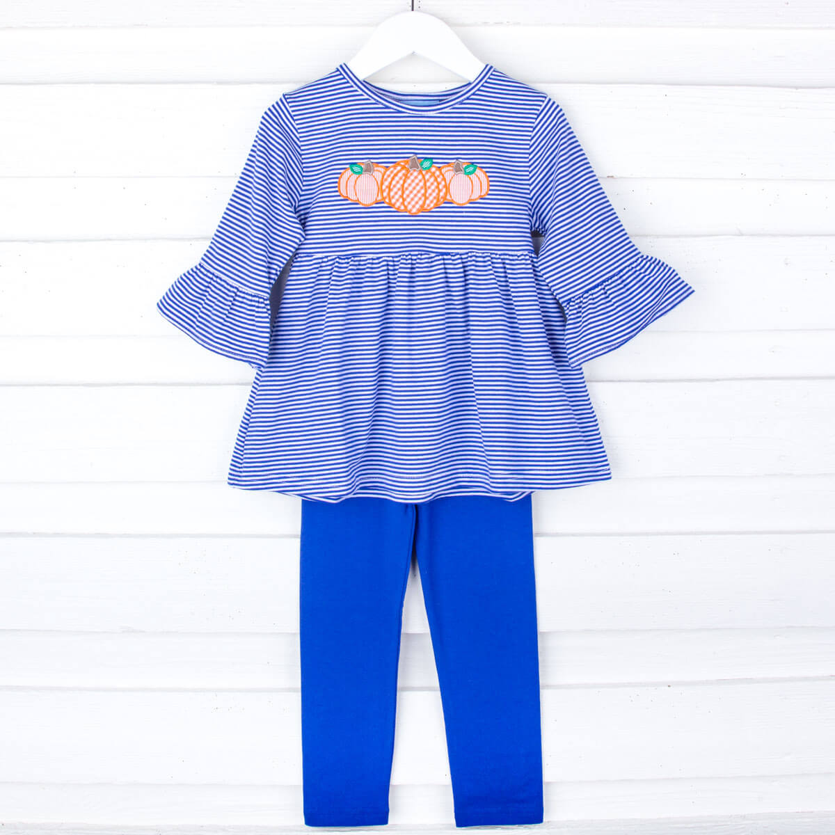 Pumpkin Cluster Royal Blue Stripe Sophia Legging Set