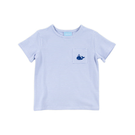 Ocean Whale Light Blue Stripe Short Sleeve Pocket Shirt