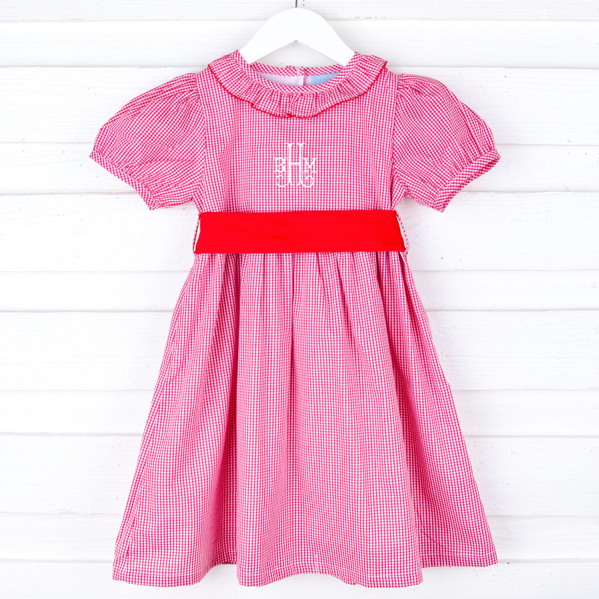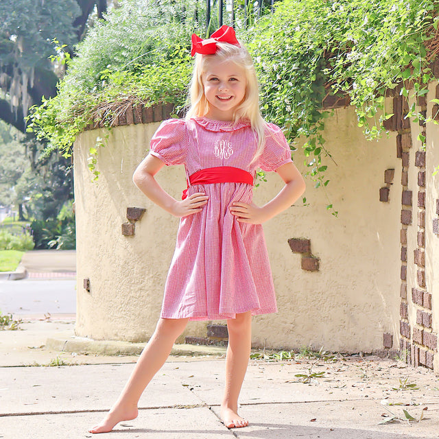 Your little one will look absolutely adorable in our Red Gingham Sash Dress! Featuring a ruffle collar, bishop sleeves, and a red sash belt, this red gingham dress is perfect for any occasion. Plus, you can add a monogram to make it extra special and uniquely hers!