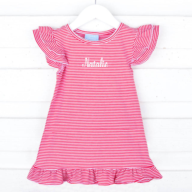 Your girl will adore wearing the Red Stripe Milly Dress throughout the entire Spring and Summer! This knit Milly-style dress features charming double ruffle sleeves and a bottom hem. Enhance its charm with a monogram for a special touch. It's the perfect outfit for playtime.