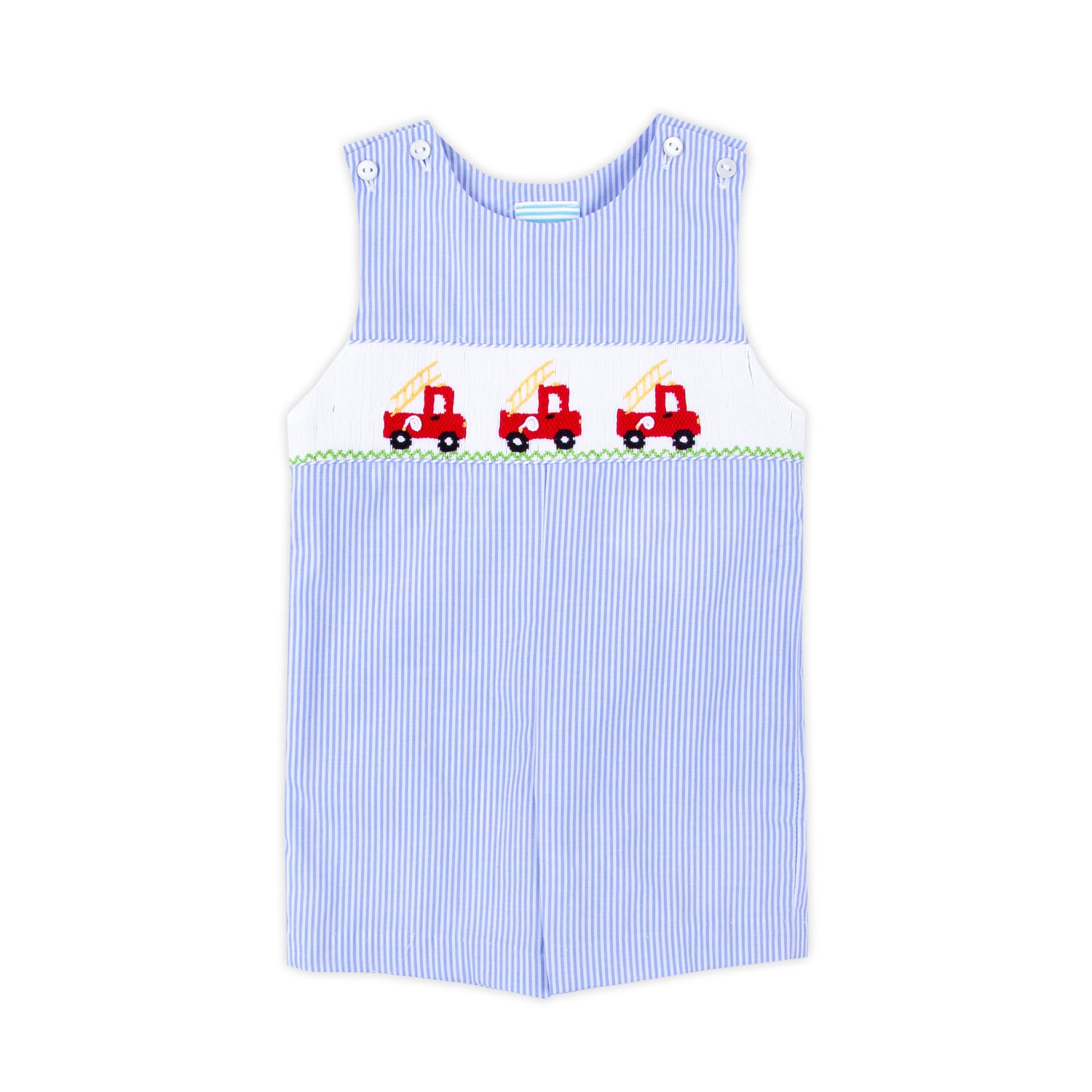 Fire Truck Light Blue Stripe Smocked Jon Jon