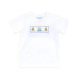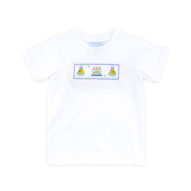 Celebrate your little one’s special day in style with our adorable Birthday Smocked Short Sleeve Shirt! This white knit shirt features smocked cake and party hats, accented with royal trim, making it perfect for marking your little one’s milestone.