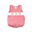 Prepare for baseball season in style with our Baseball Smocked Red Plaid Sun Bubble. This charming red gingham plaid bubble features smocked bats and baseballs, creating a playful and sporty look. The thoughtful design includes convenient shoulder buttons and snaps in the stride, ensuring easy dressing and undressing for your child.