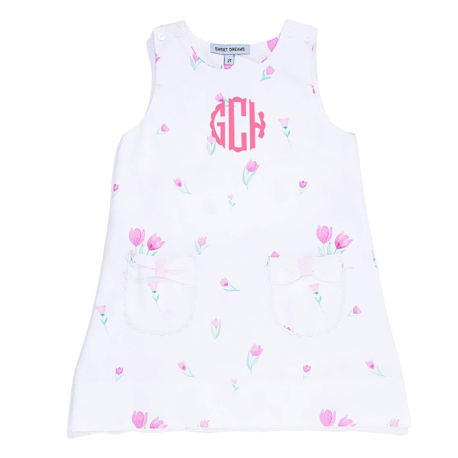 This Bow Pocket Tulip Print Dress is the sweetest spring outfit. The sleeveless dress features a sweet tulip print with the cutest bow pockets. Ideal for family gatherings or Easter adventures, this dress is sure to bring charm and grace to your little one's special moments! Add a monogram to make it extra special!