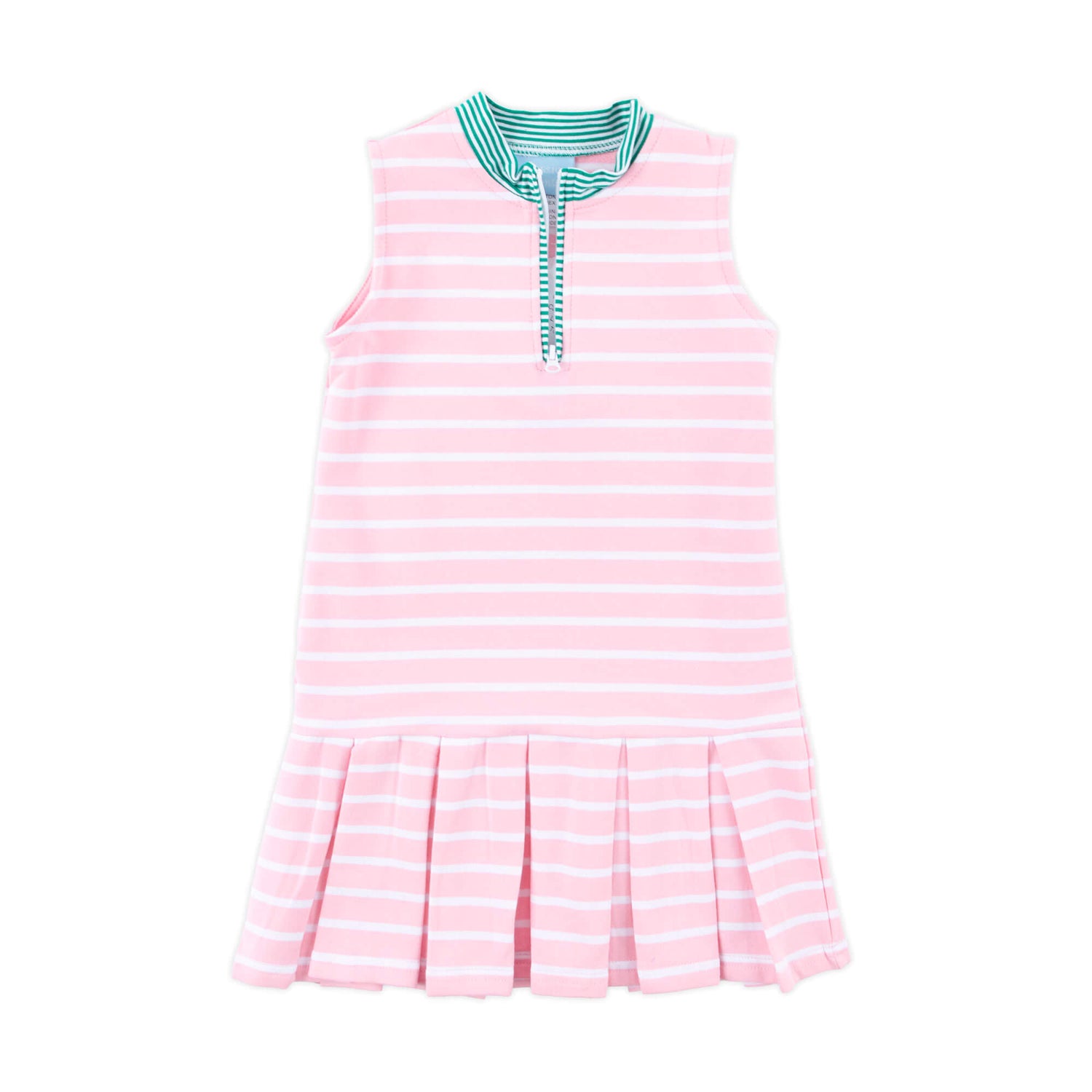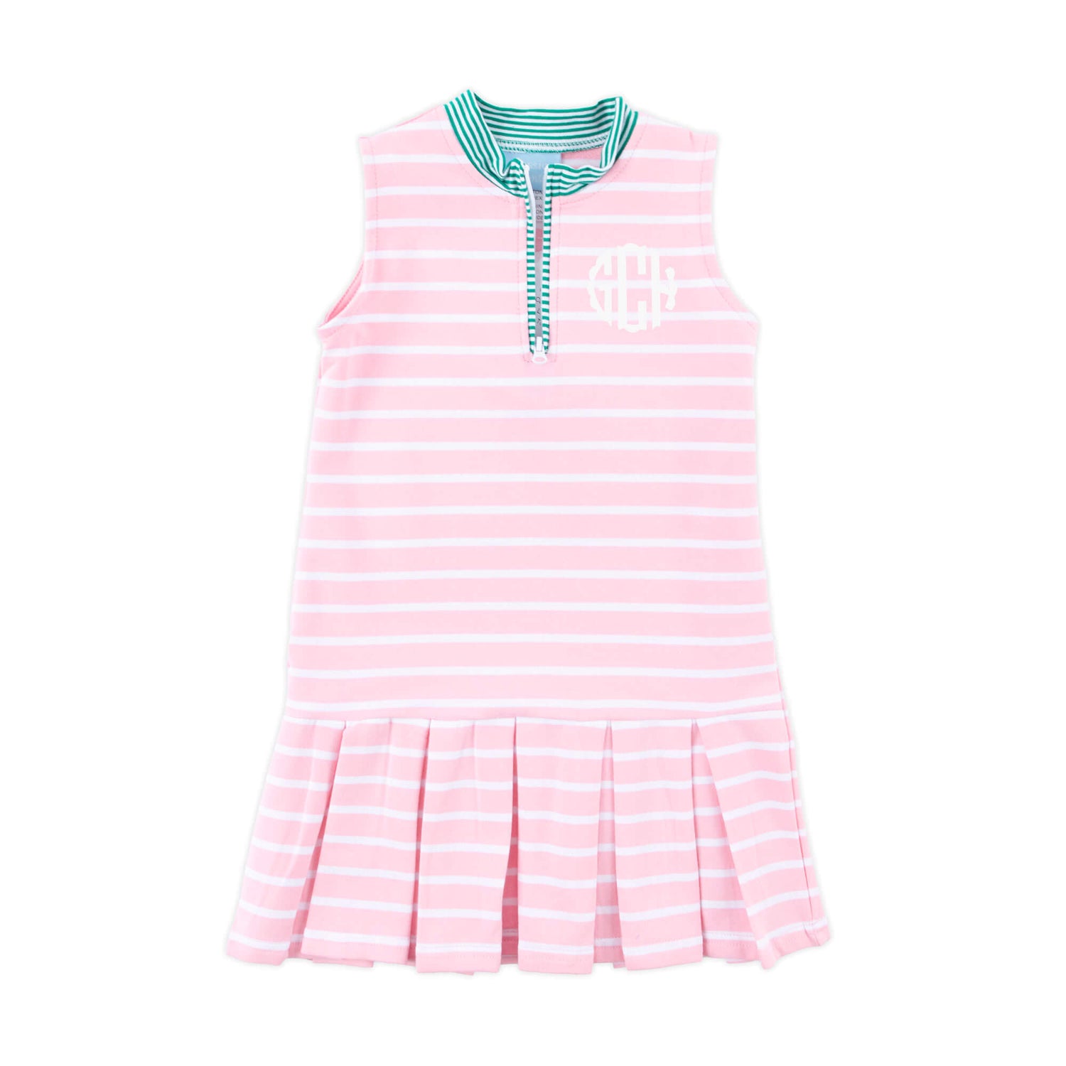Serve up some summer fun in our Light Pink Stripe Tennis Dress! This sleeveless dress, designed in pink stripe French terry, features a pleated skirt that’s perfect for playtime on and off the court. Add a monogram to make it uniquely theirs!