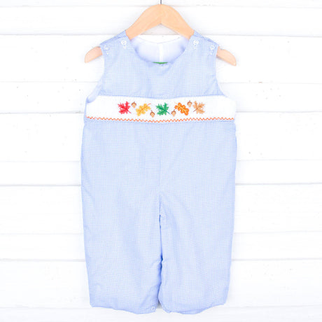 Leaves And Acorn Smocked Light Blue Gingham Longall