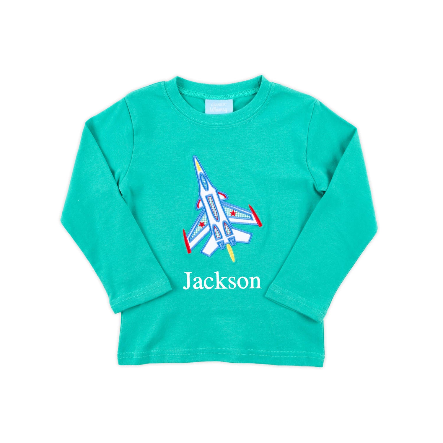 Your little guy will absolutely love this Jet Green Long Sleeve Shirt! This green long-sleeve shirt features a fun applique of a rocket jet, making it ideal for playtime fun, comfort, and cuteness! Don't forget to add a monogram for a personal touch!