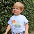 It’s pumpkin patch season with our Tractor Harvest Light Blue Stripe Short Sleeve Shirt! This light blue stripe knit shirt features a fun construction loader applique lifting a big pumpkin from the patch. Perfect for playtime fun, comfort, and cuteness! Don’t forget to add a name monogram below the applique for a special touch!