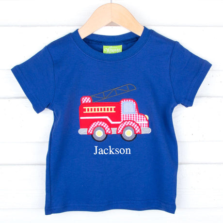 $27.99Unit price /Unavailable in this combination Fire Truck Applique Blue Short Sleeve Shirt